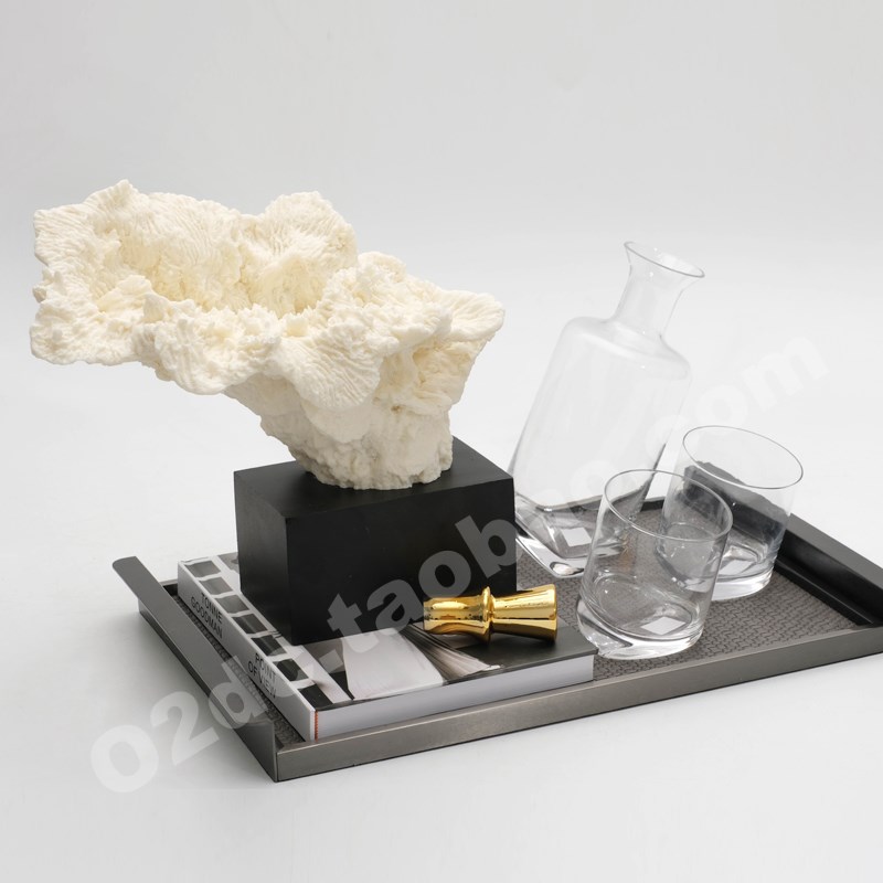 轻奢白色珊瑚水晶摆件家具样板间售楼M处酒店桌面软装饰品