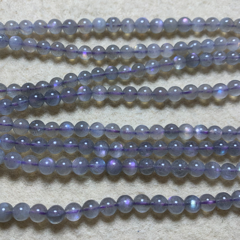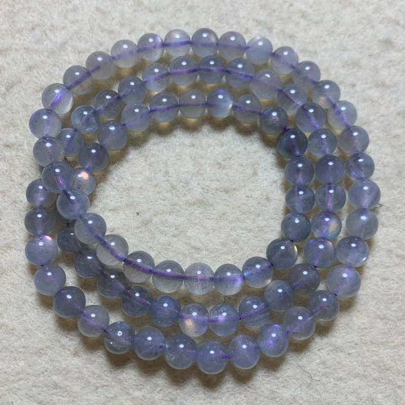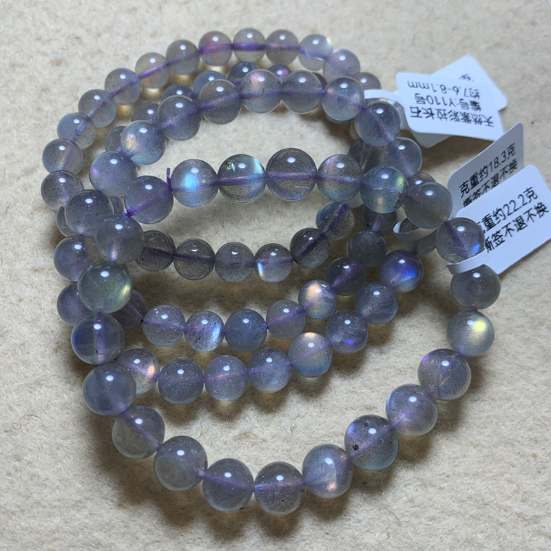 天然冰种紫彩拉长石灰月光拉长石佛珠手链手串蓝光月光石水晶饰品