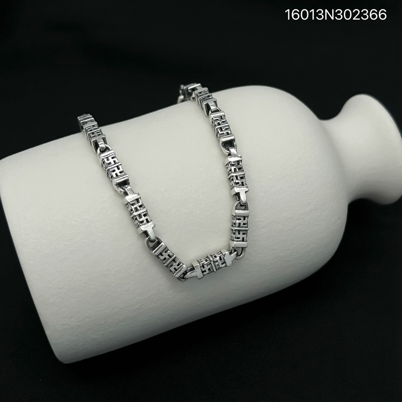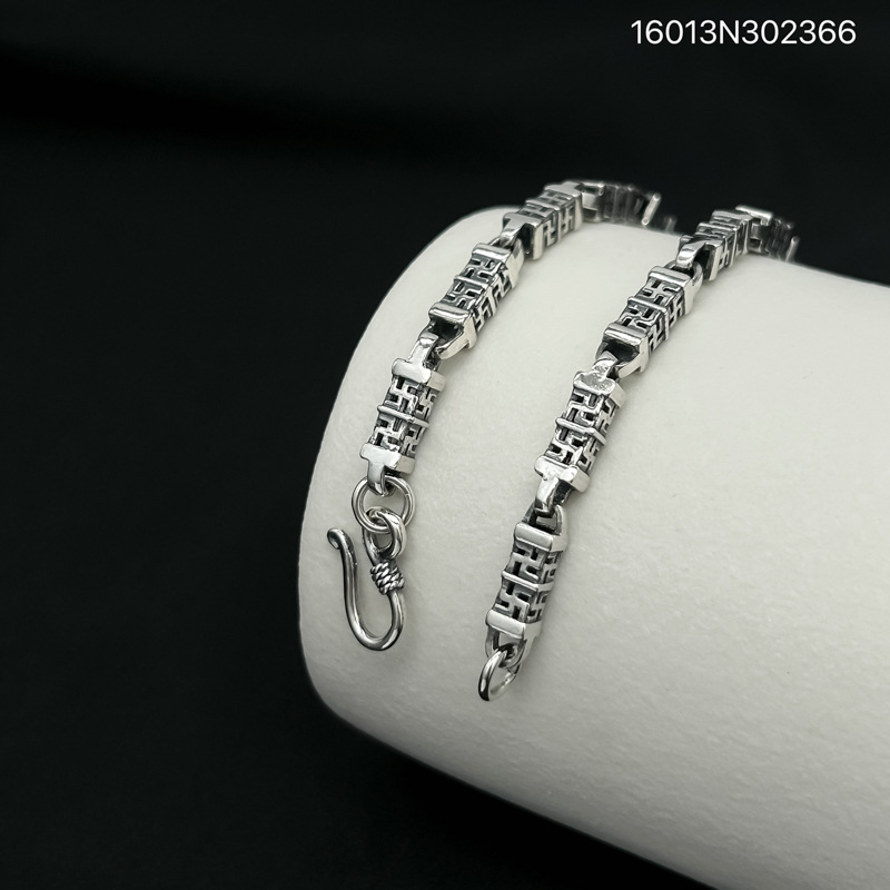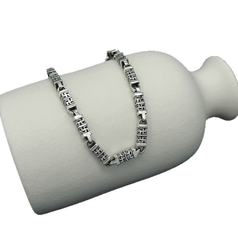 s925纯银手链男士复古霸气古巴镂空手环简约百搭气质高级感手饰