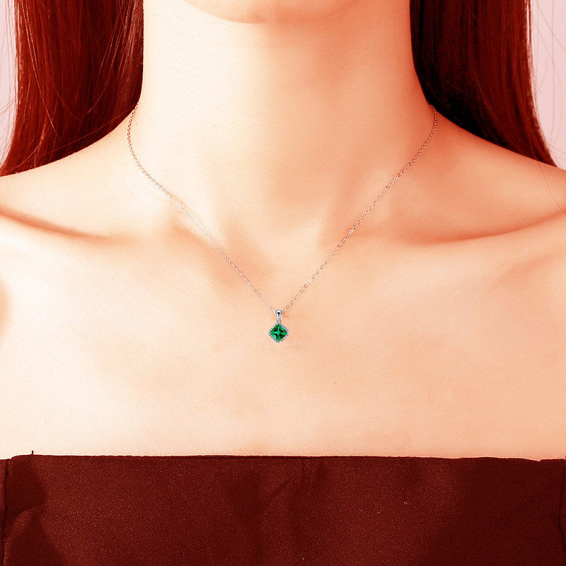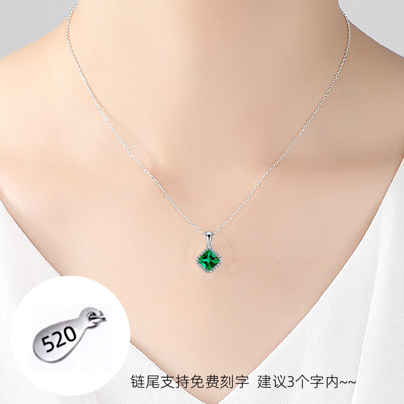 绿色925银项链女小众高级气质爆闪百搭2025新款方形吊坠生日礼物