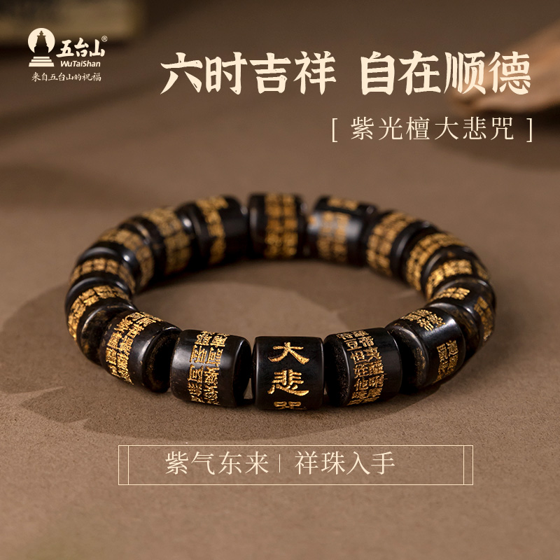 五台山天然紫光檀保平安手串刻大悲咒心经木质佛珠文玩手链男女款