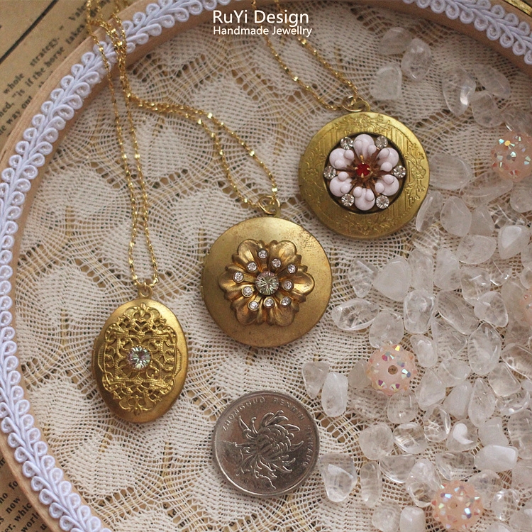 如意|欧美复古中古董首饰舶来品相片盒香膏盒吊坠项链女礼物收藏