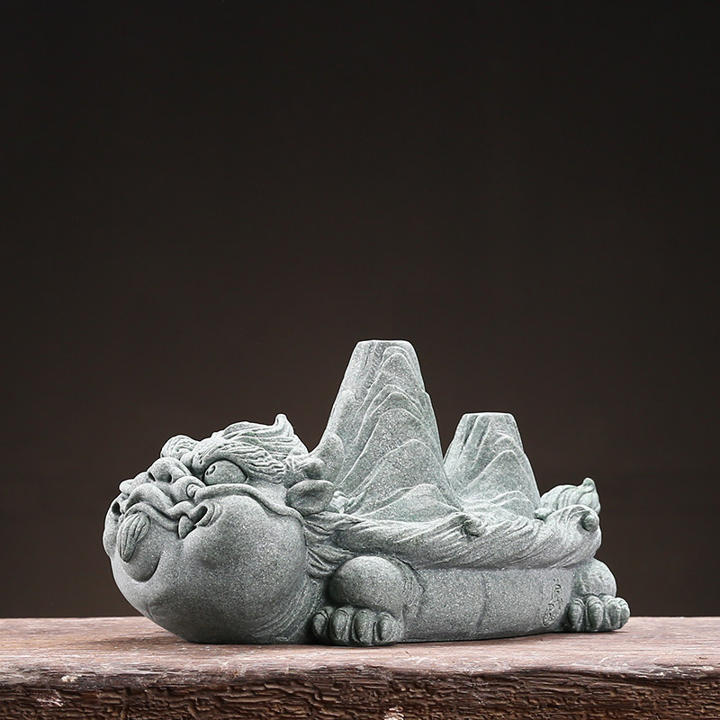 创意青砂石霸下龙之子鱼缸假山造景新中式家居客厅茶桌装饰摆件