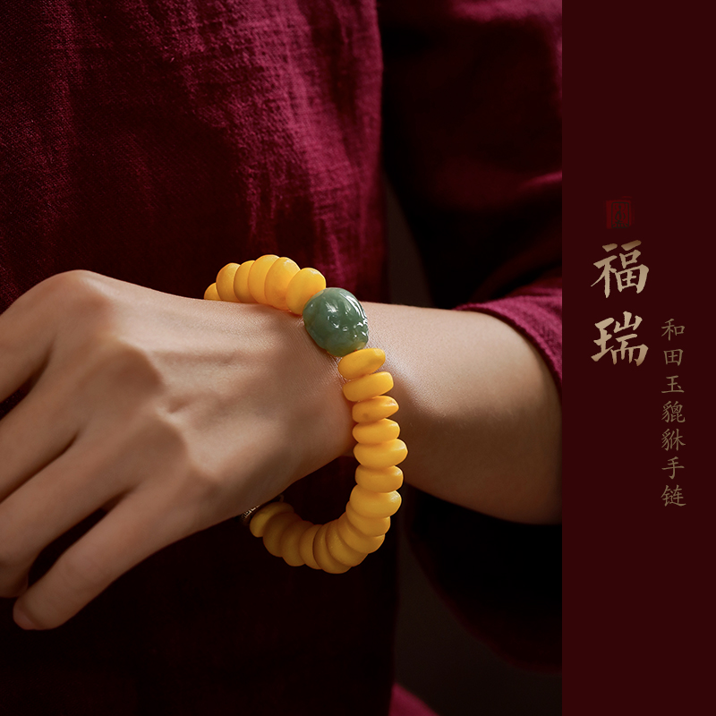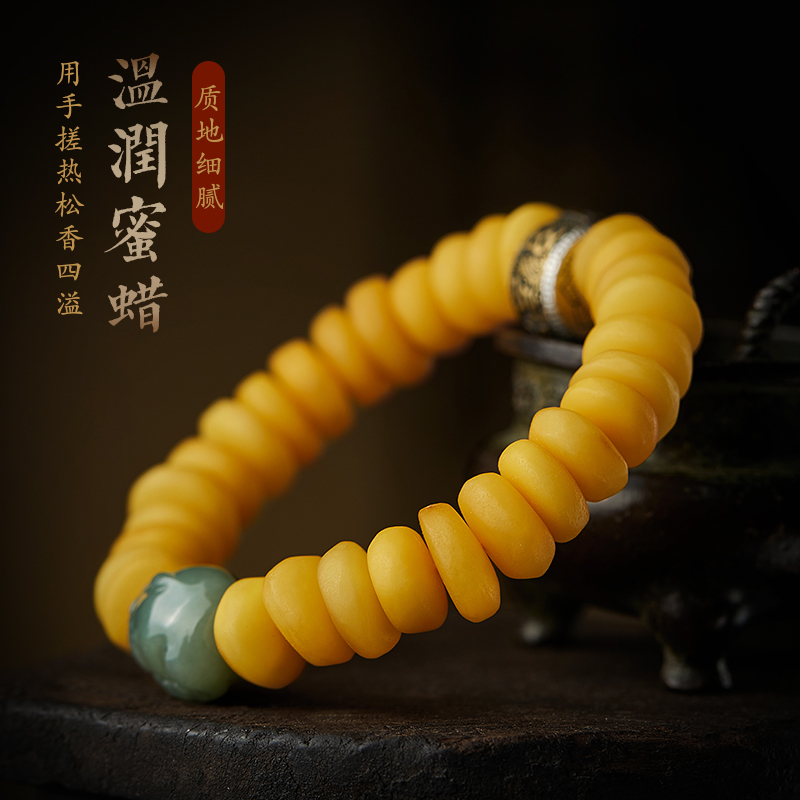 蜜蜡手串天然鸡油黄老蜜随形圆珠手持文玩佛珠琥珀饼子算盘珠手链