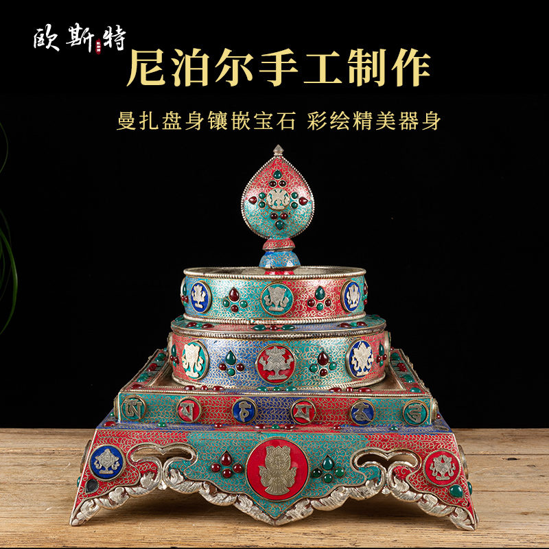 欧斯特 八吉祥曼扎盘修盘 尼泊尔手工镶嵌七宝石供修曼茶罗曼达盘