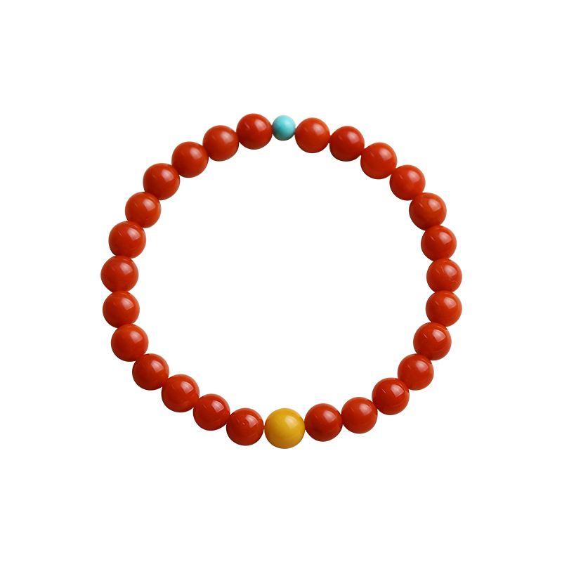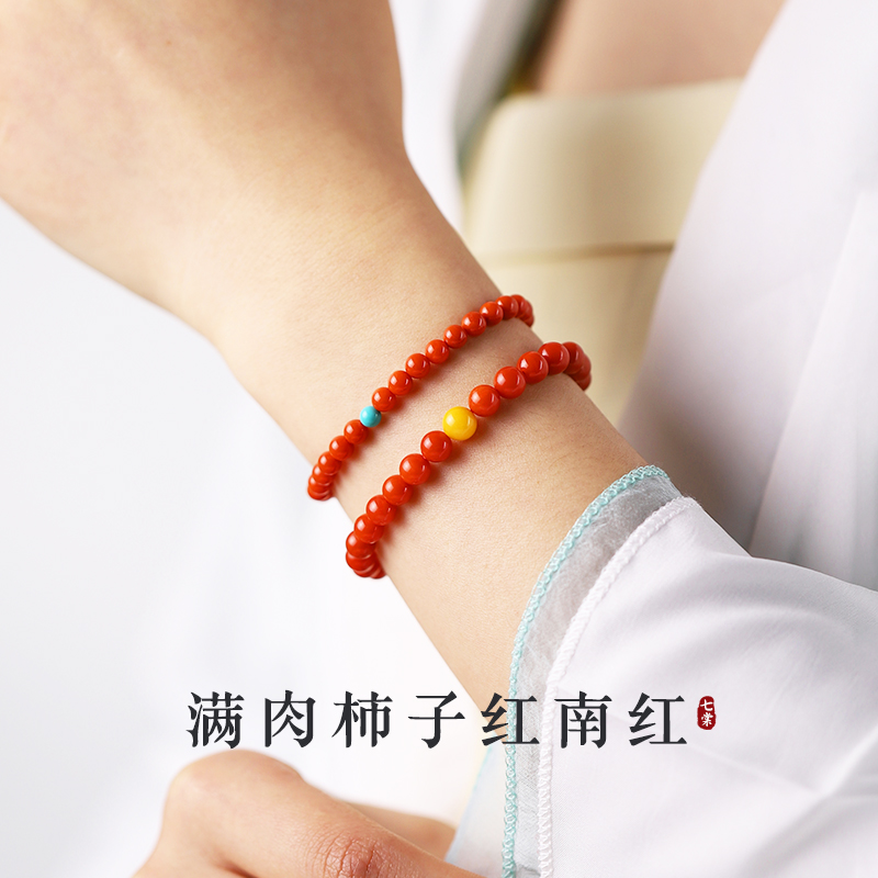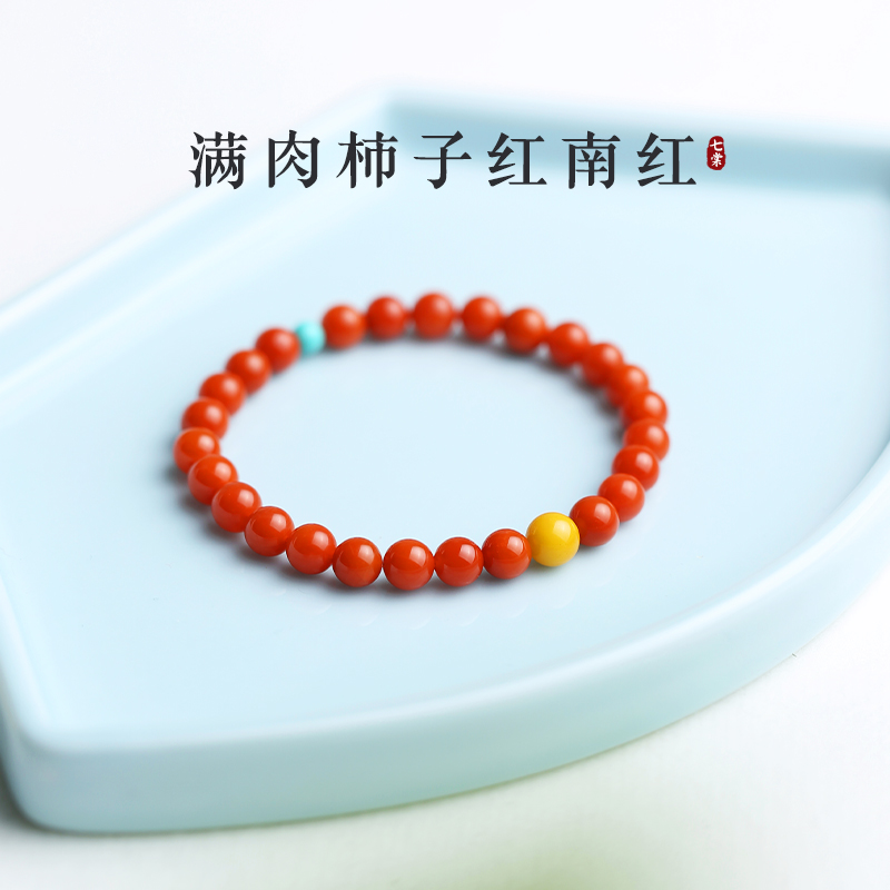 红色玛瑙手串蜜蜡送女友满肉柿子红南红手链绿松石4mm天然玉石女