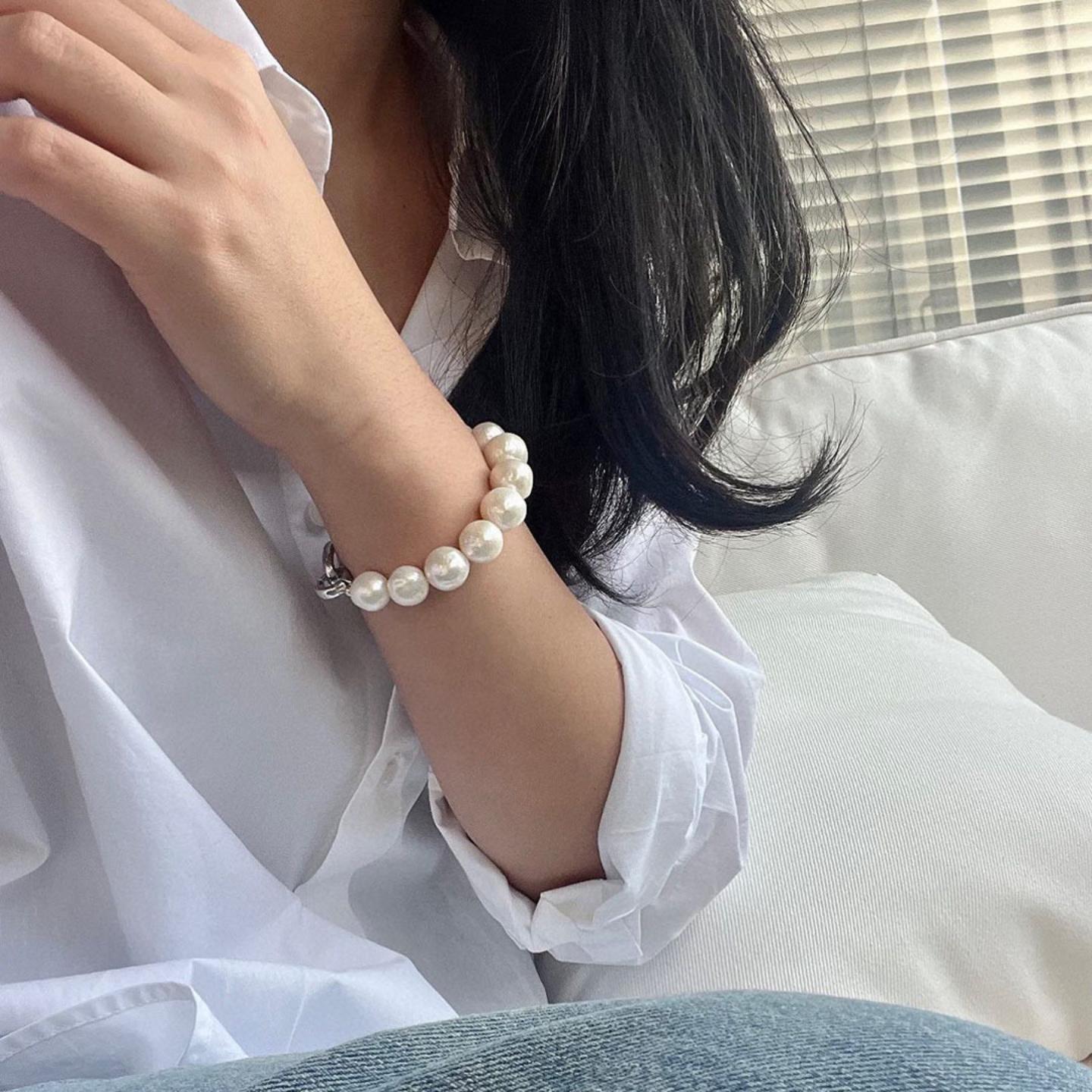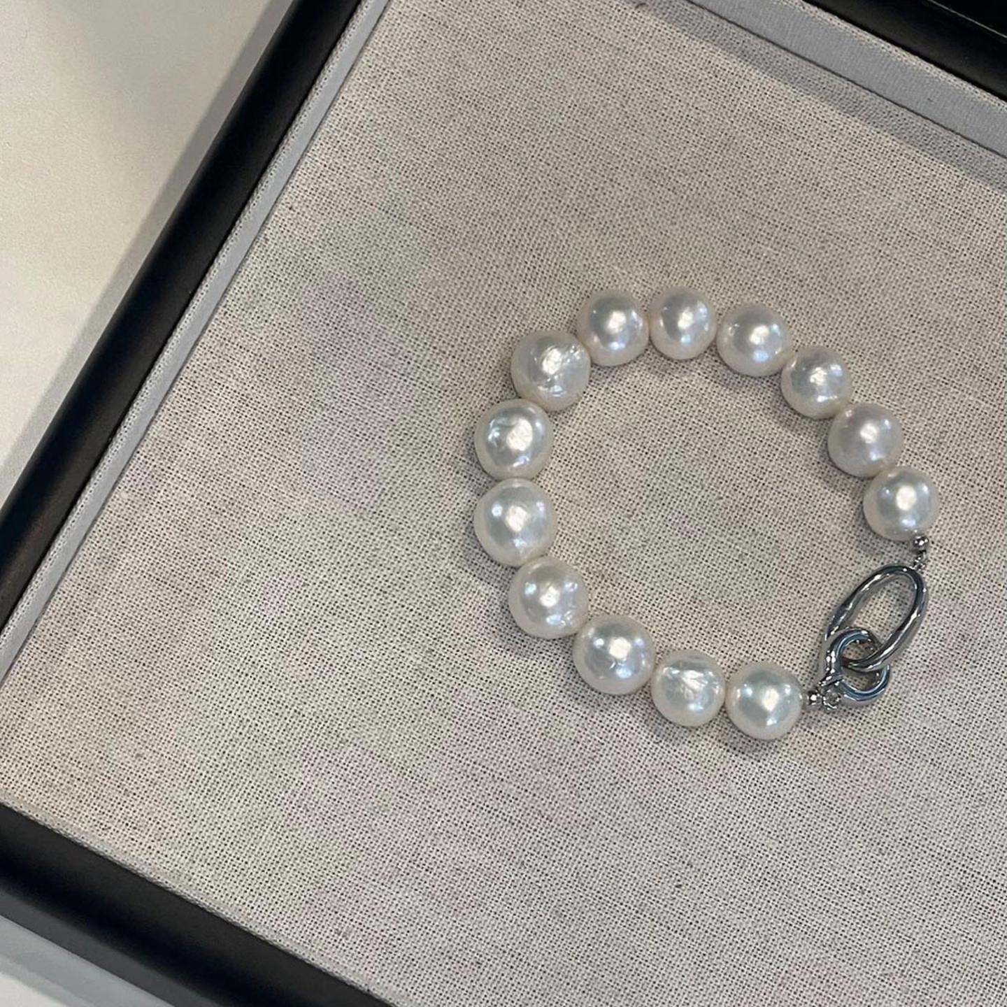 10-12mm天然淡水不规则巴洛克珍珠手链经典小众法式复古手串女ins