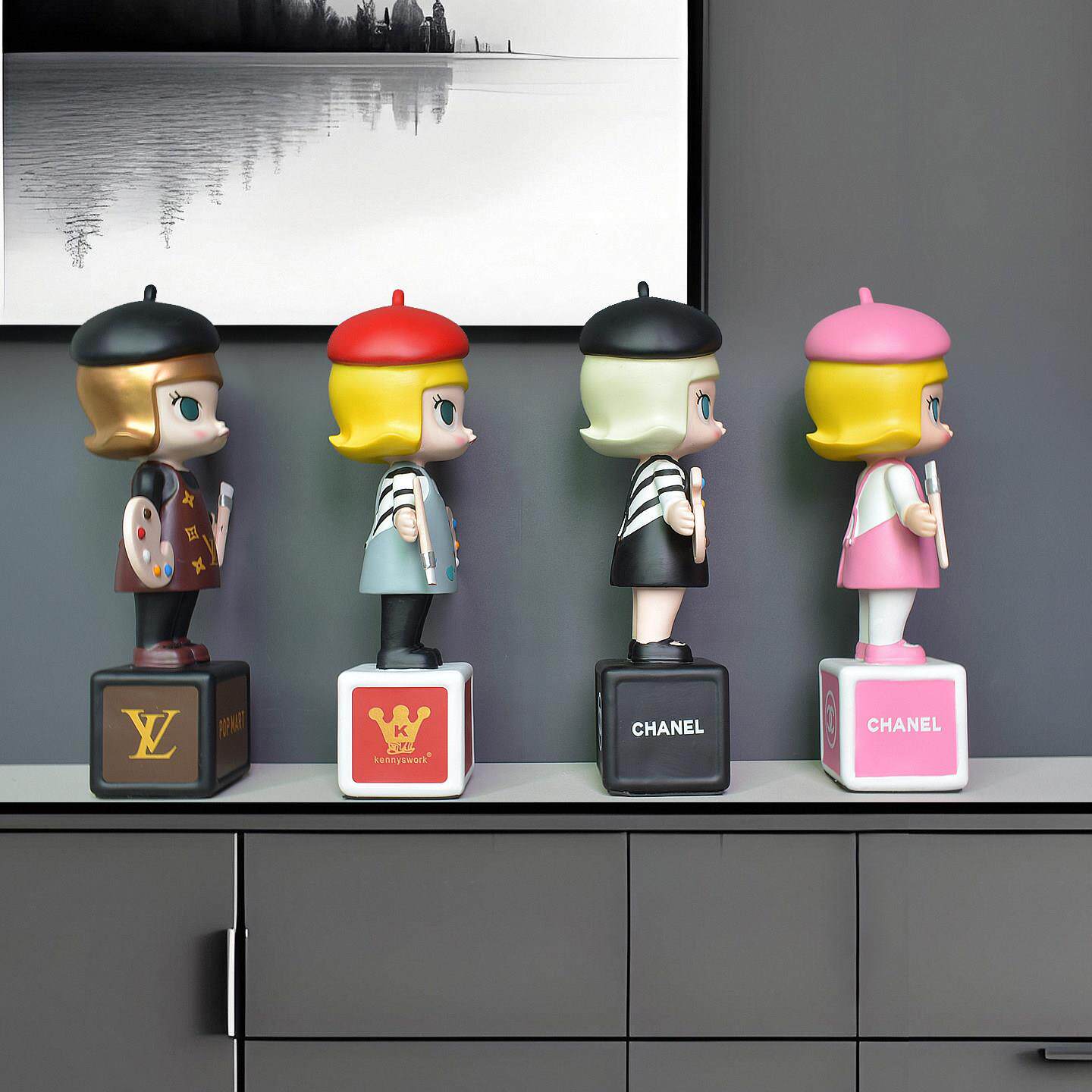 家居电视柜酒柜摆件高级潮玩小画 画家茉莉公仔桌面摆设客厅玄关