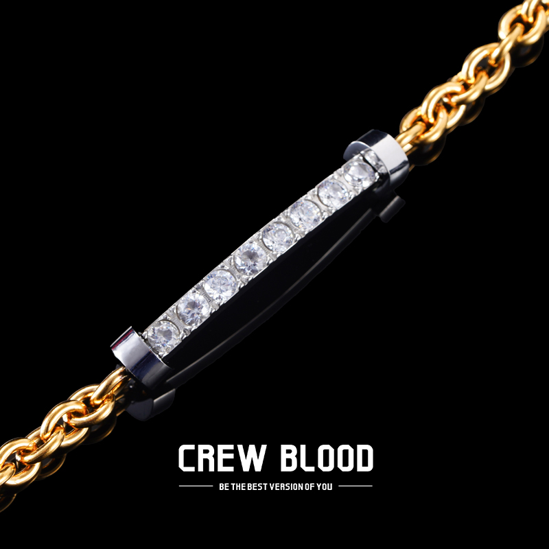 CREW欧美满钻拱形锆石拼接手链男士钛钢小众复古百搭轻奢配饰