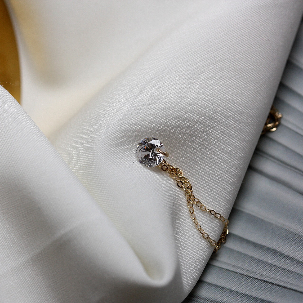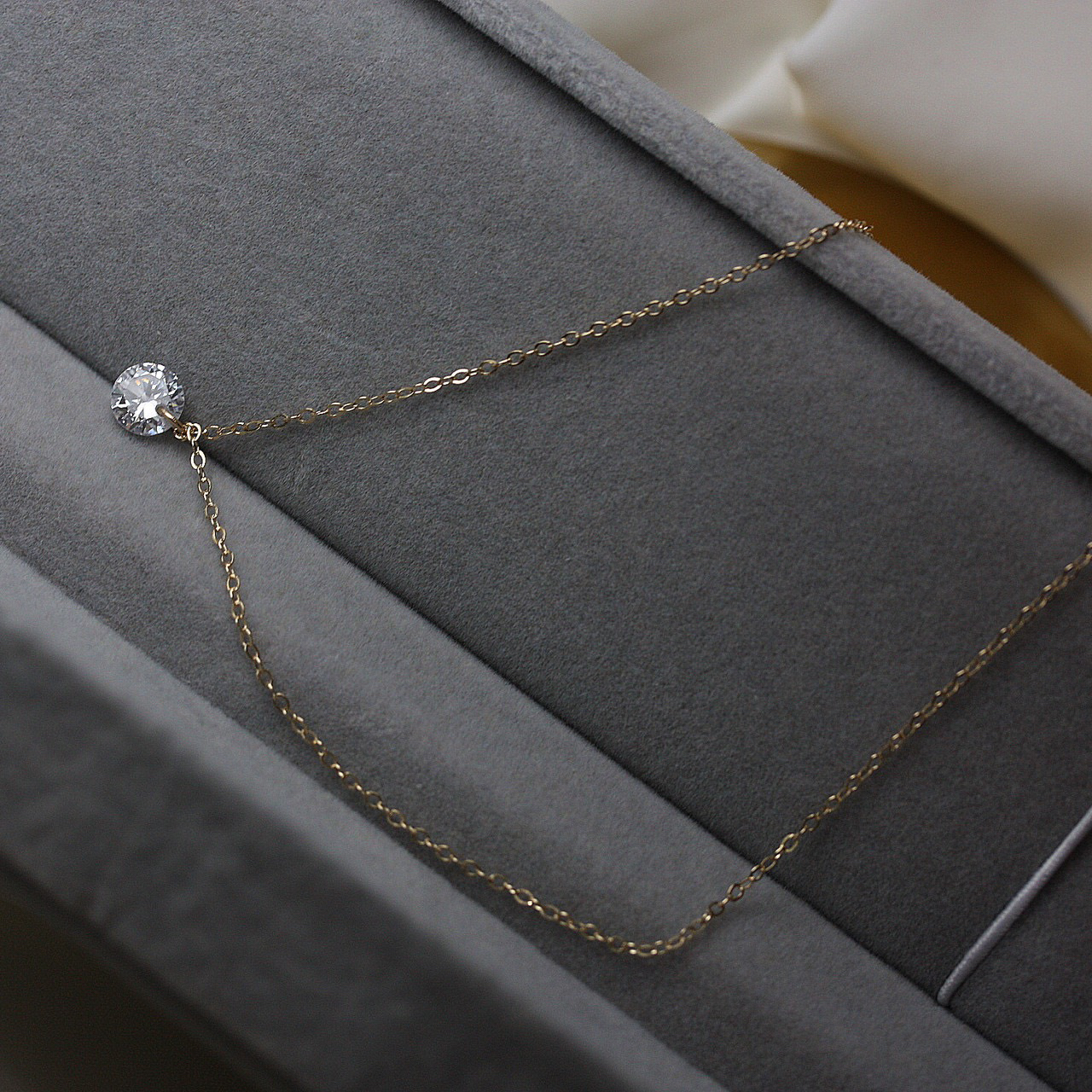 极简!把星河带在颈间清冷感简约纯银14K包金鼻屎钻项链通勤轻奢