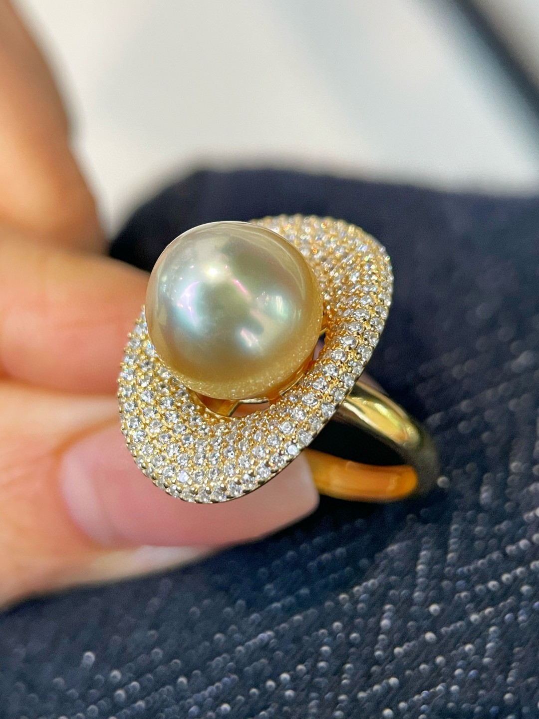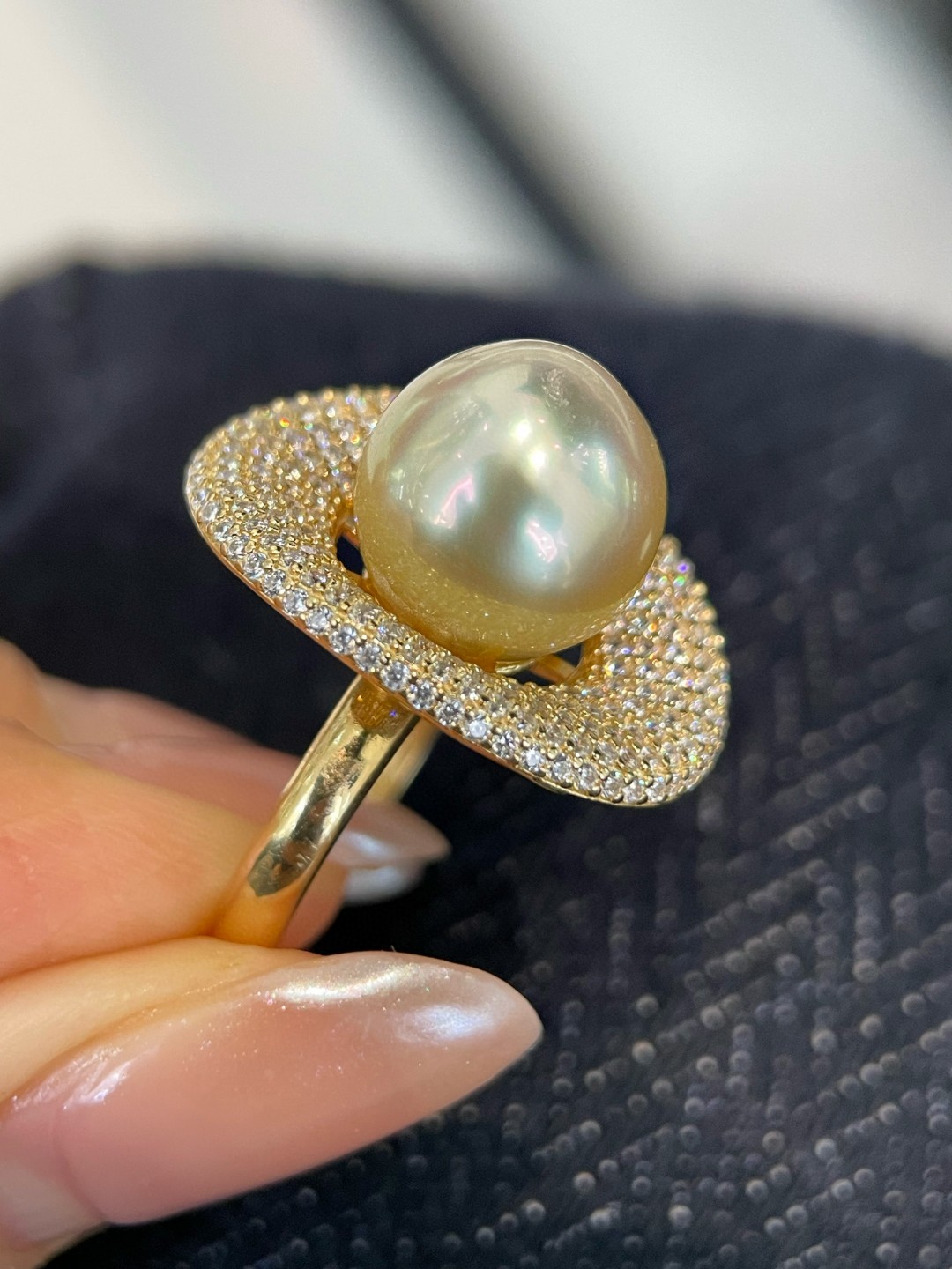 南洋金珠戒指氛围感的神轻松拿捏11-12mm镜面爆亮珠光 精工925银