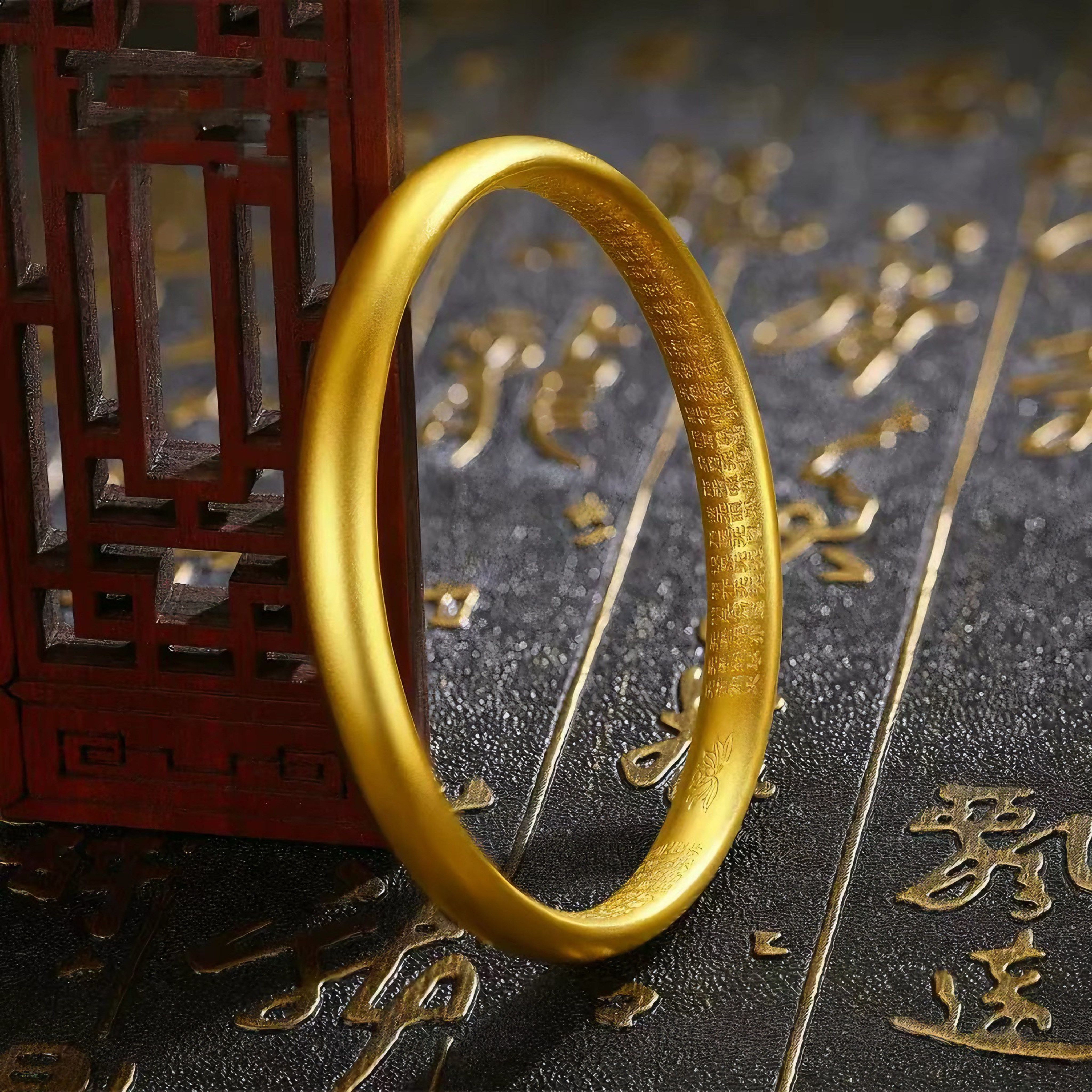 镀K金古法传承手镯女色六字镯子磨砂心经手环款