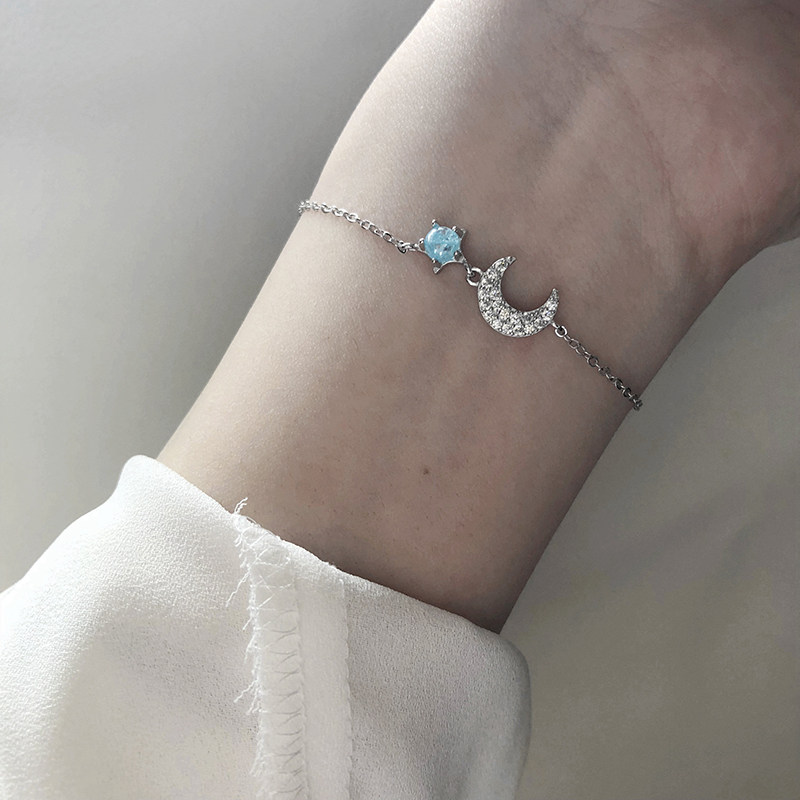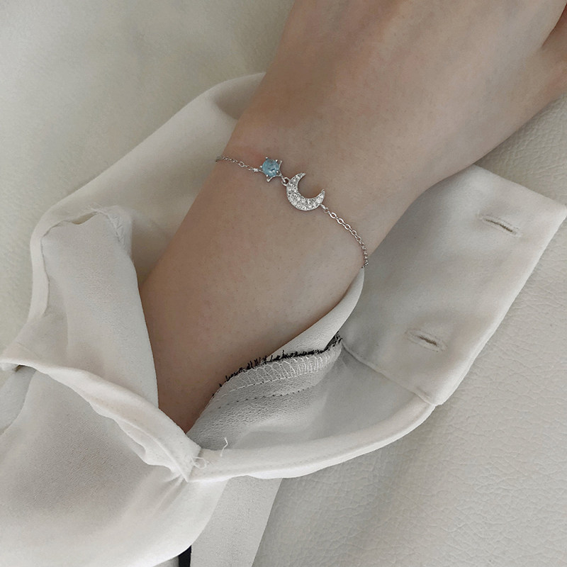纯真岁月 月亮控 透亮蓝色宝石纯银月亮手链
