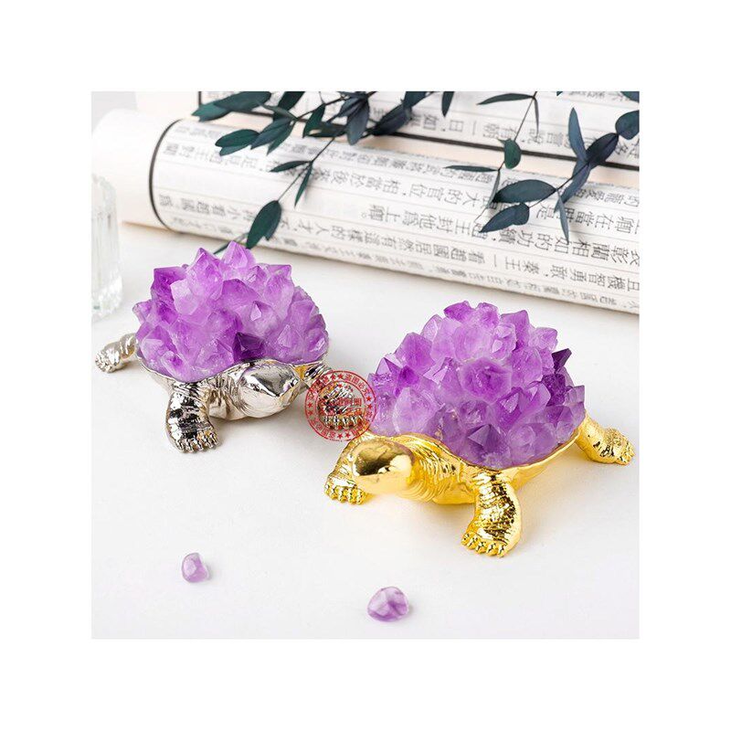 天然水晶簇乌龟摆件 紫水晶黄水晶晶簇晶牙diy乌龟工艺品装饰摆件