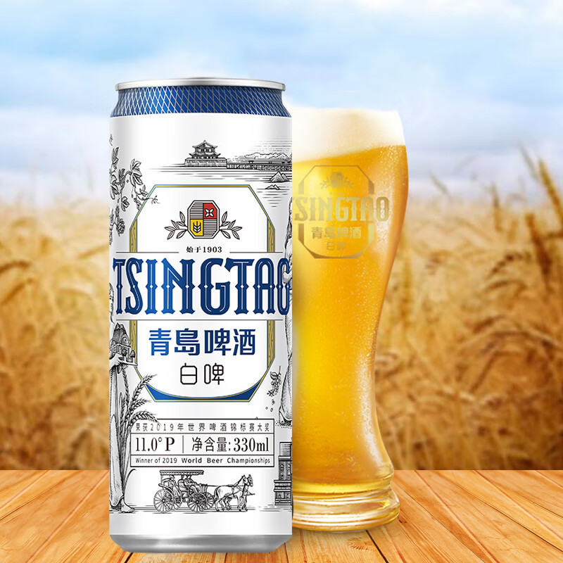 青岛啤酒白啤330ml*24/6罐11°P全麦精酿纤体罐啤酒尝鲜青岛白啤