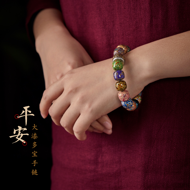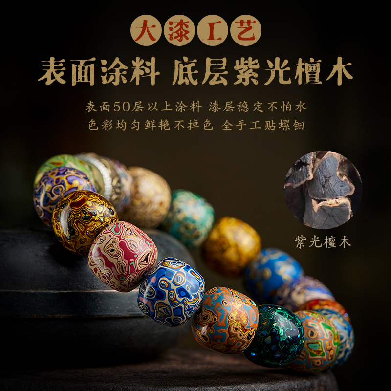 大漆珠多宝手串十八子文玩佛珠螺纹犀皮漆器非遗冷门盘玩螺钿珠男