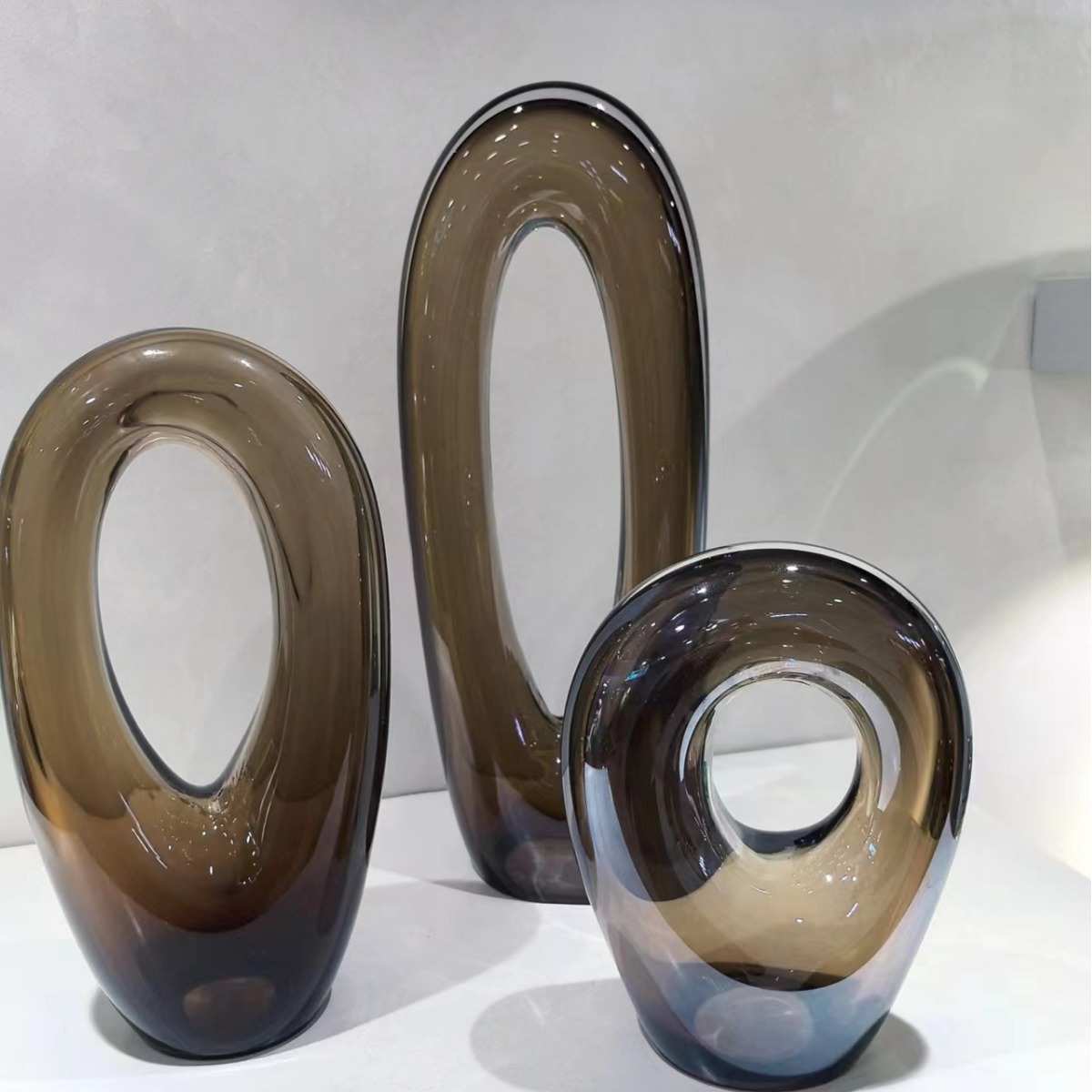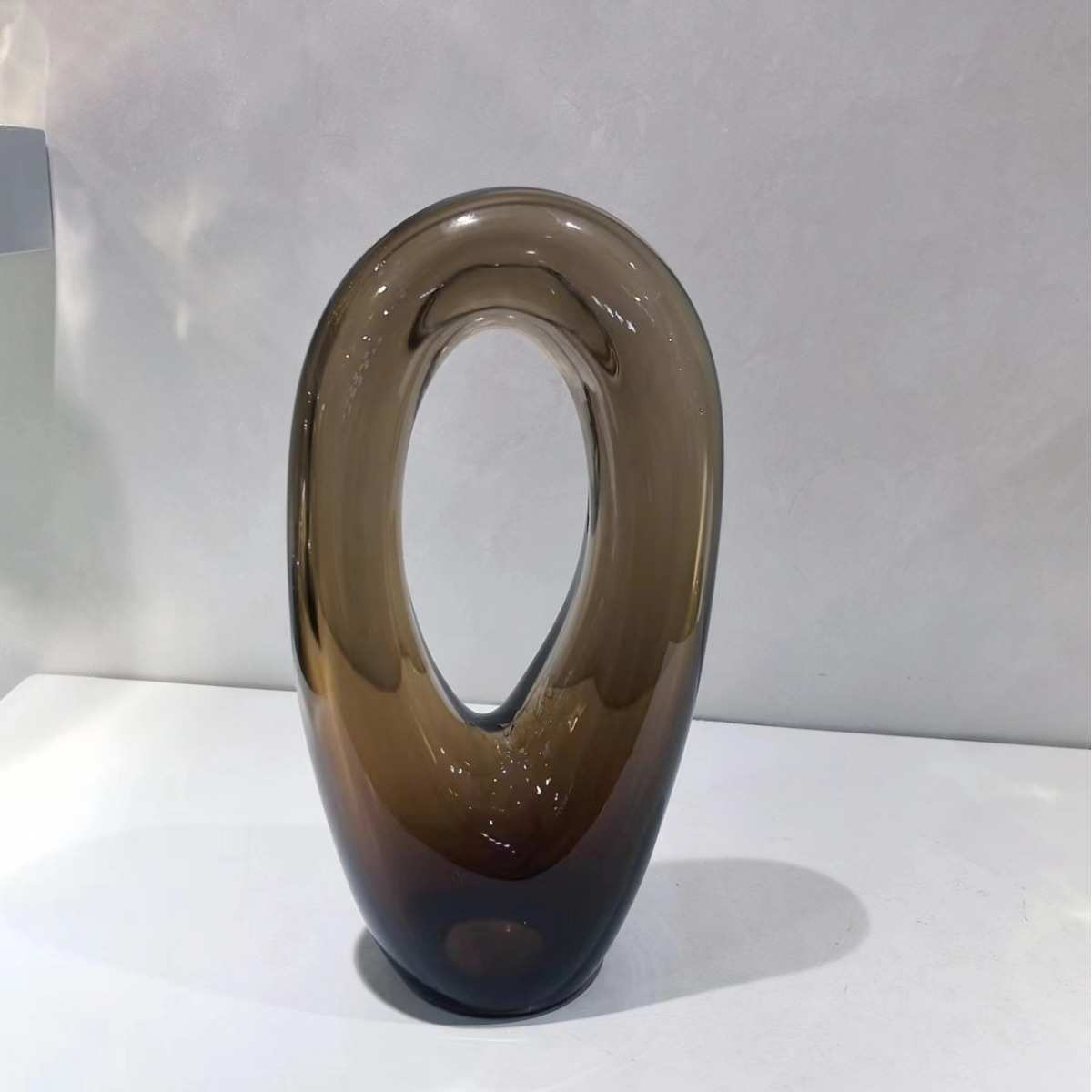 现在简约轻奢茶色渲染创意花器客厅餐桌花瓶样板房售楼处桌面摆件