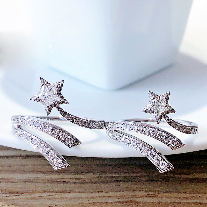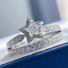 Young超仙设计五角星切割仿真锆石戒指 双层缠绕日月星辰钻戒女戒