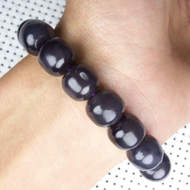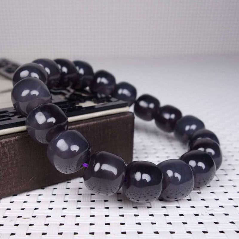 天然帝王紫老型珠和田玉手串烟紫色手链紫罗兰苹果珠山流水手饰