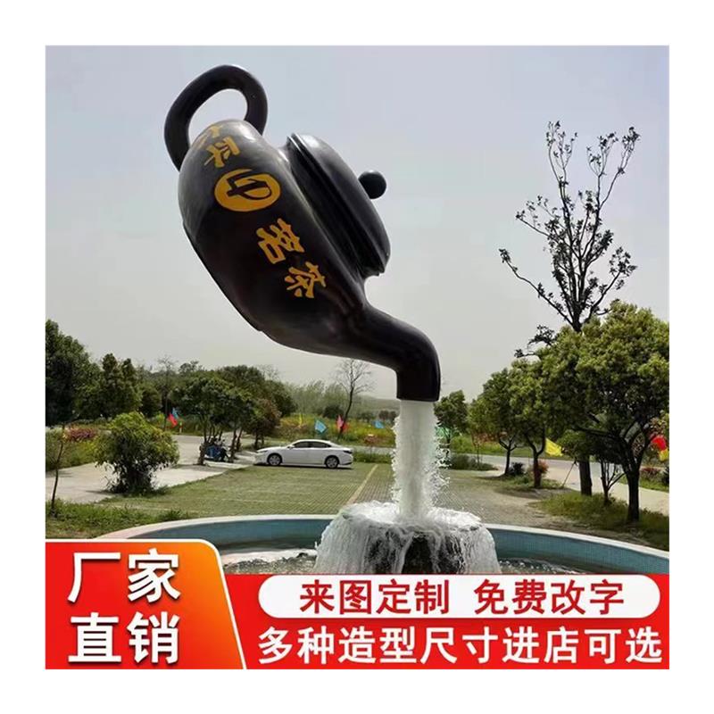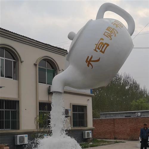 大型玻璃纤维悬空流水天壶雕塑茶壶模型创意景观户外室内茶园摆件