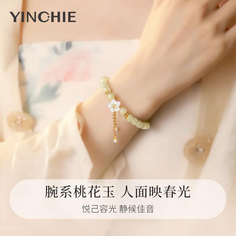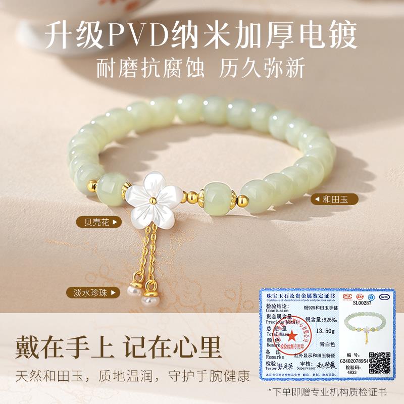 纯银桃花和田玉手链女生轻奢2025新款玉手串七夕情人节礼物送女友