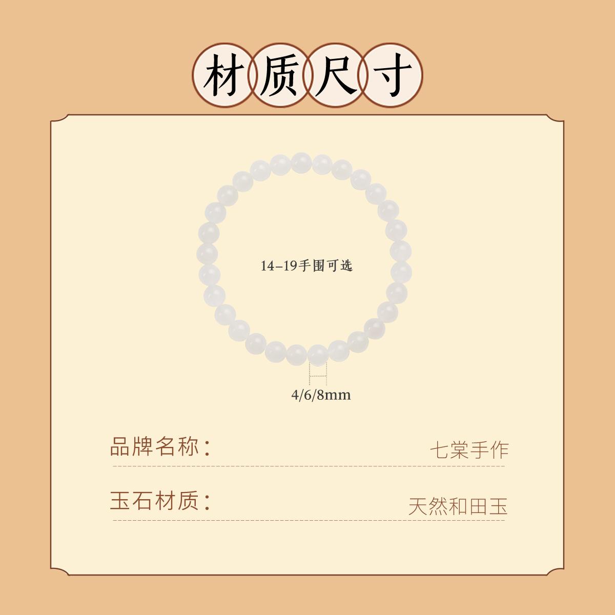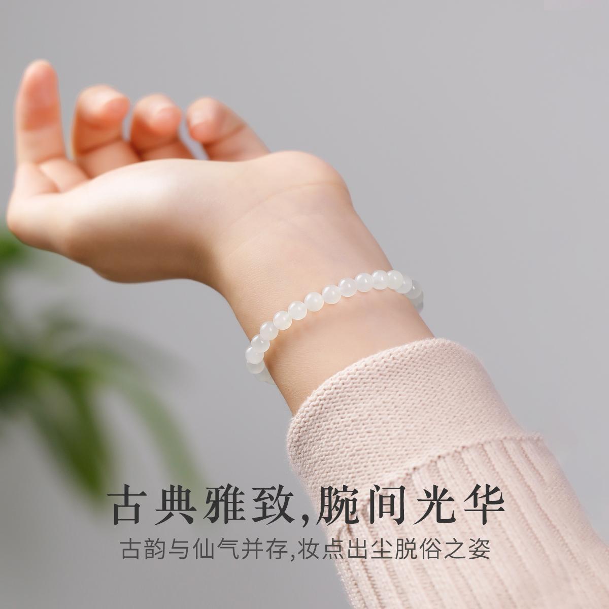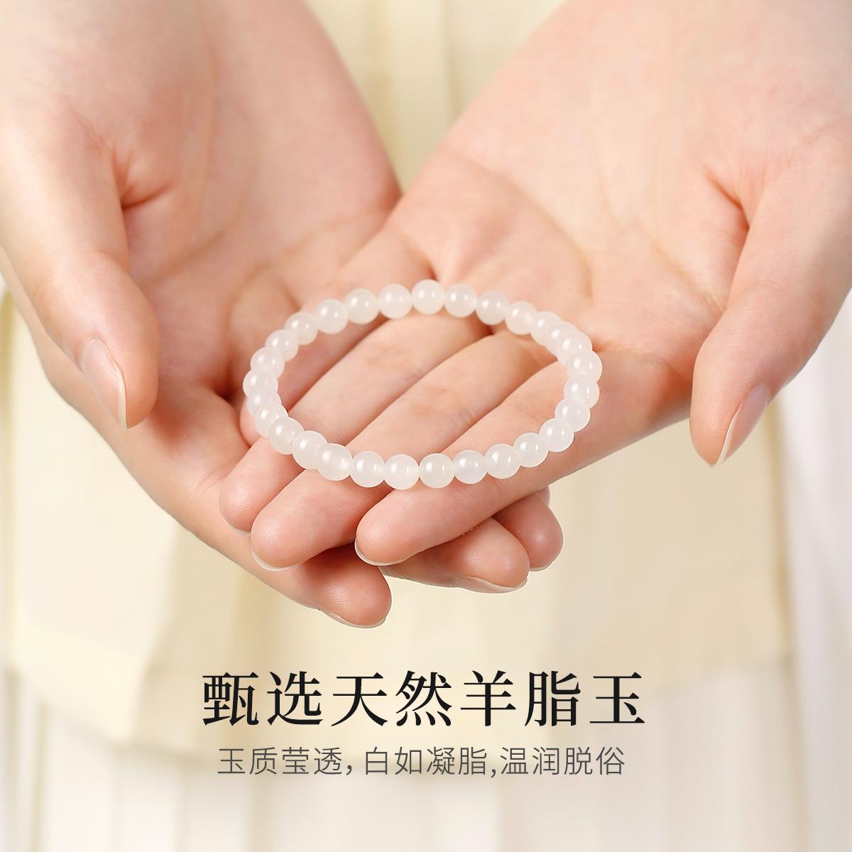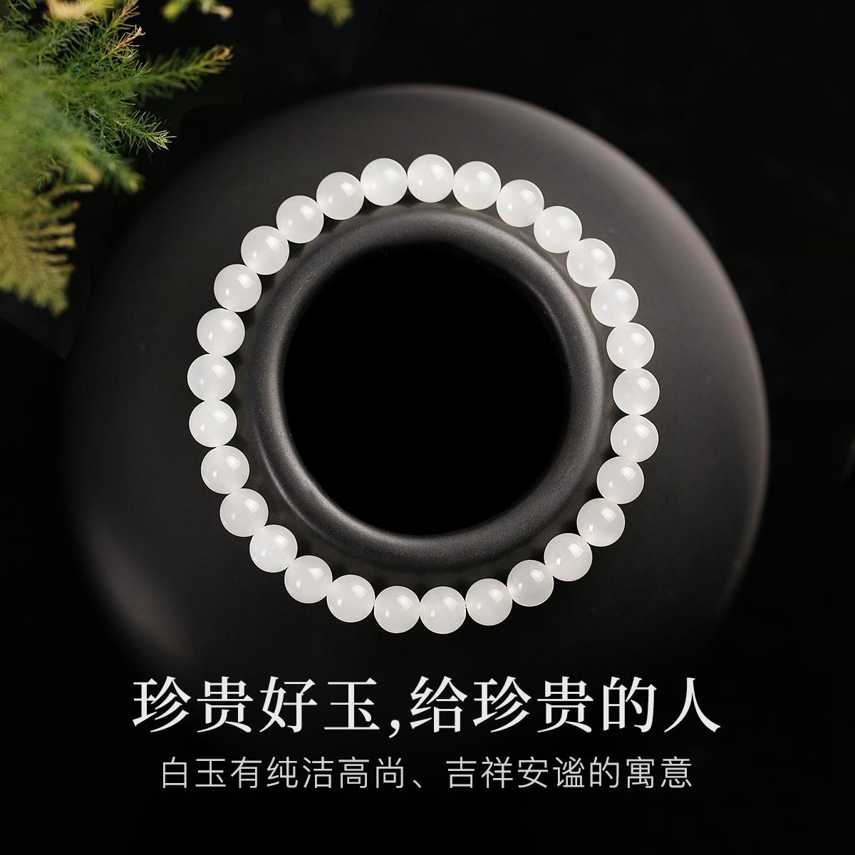 新疆羊脂白玉手链圆珠单圈简约转运天然和田白玉手串散珠串珠玉石