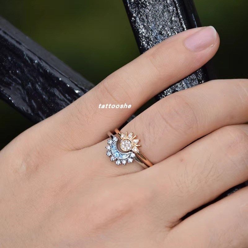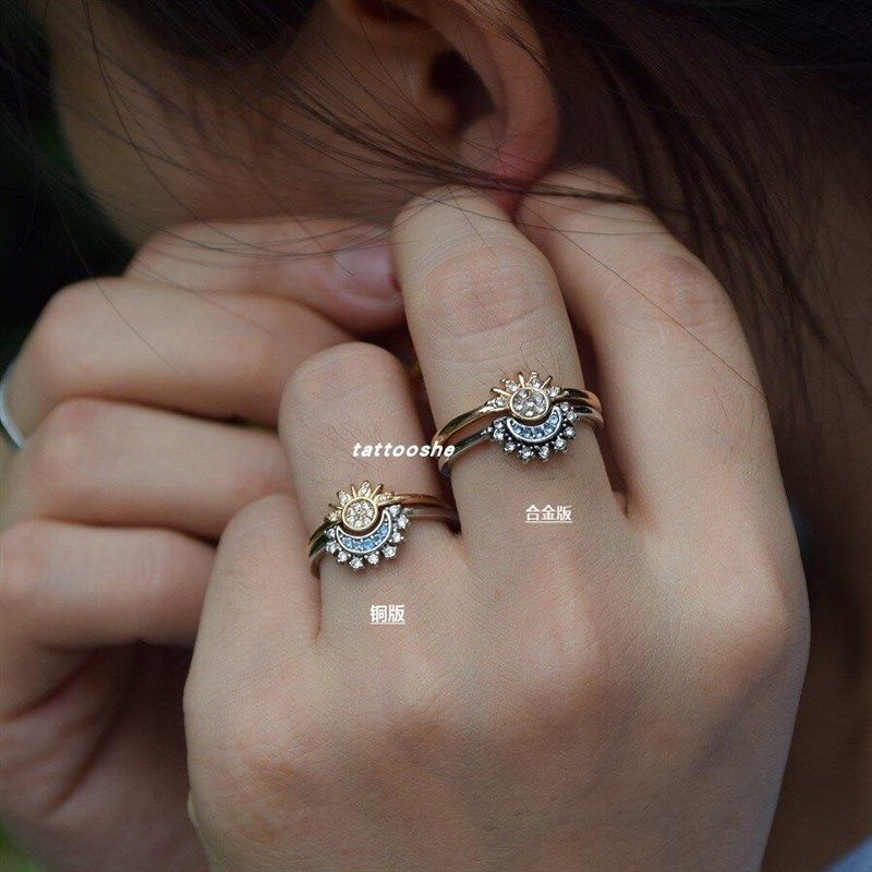 潘家新款日月同辉可叠戴组合双色戒指IU满钻情侣S对戒个性闪耀套