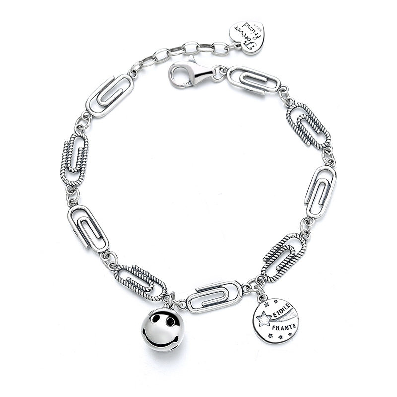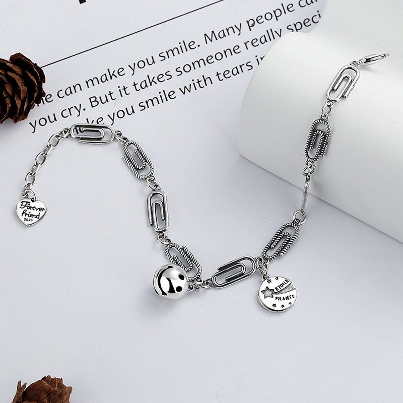 云尚服饰s925纯银个性回形针手链ins笑脸铃铛日韩版冷淡风手饰女