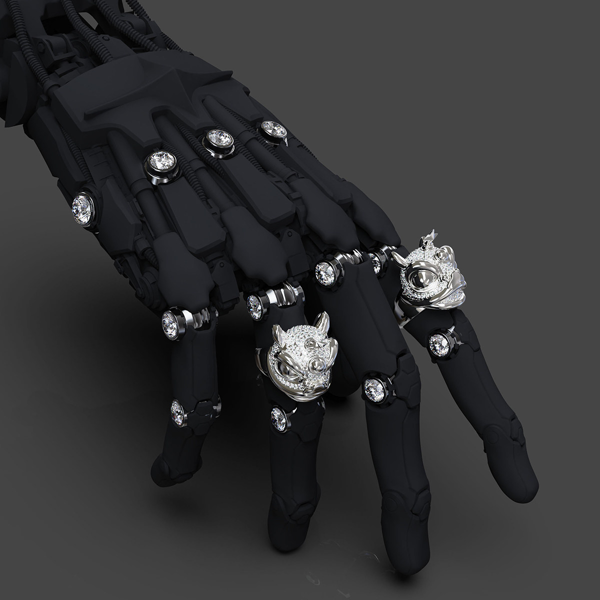 于适同款YURITAN X FAKEART费奇满钻开口戒指潮酷情侣戒