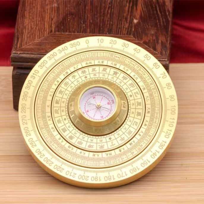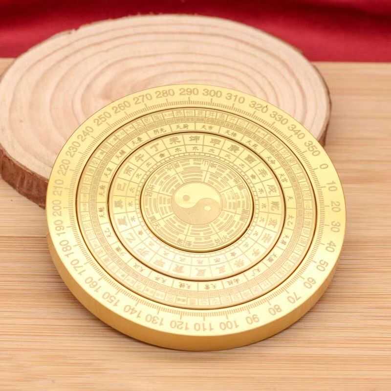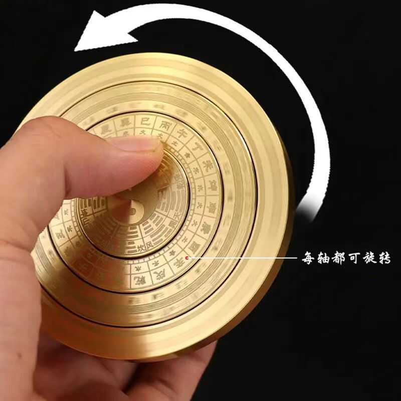 黄铜复古实心随身迷你罗盘太极八卦指尖陀螺手把件轮盘大号