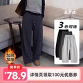 灰色运动裤女秋冬2025新款高腰直筒卫裤小个子加绒香蕉阔腿裤子女