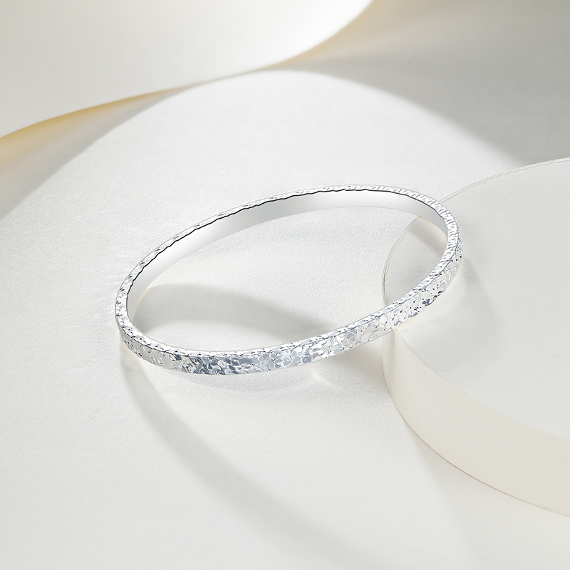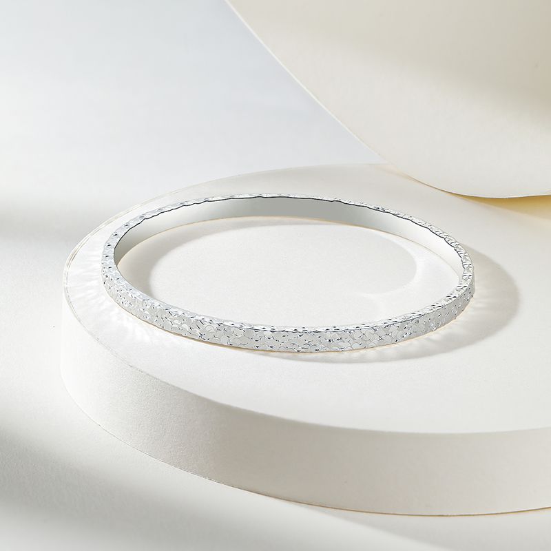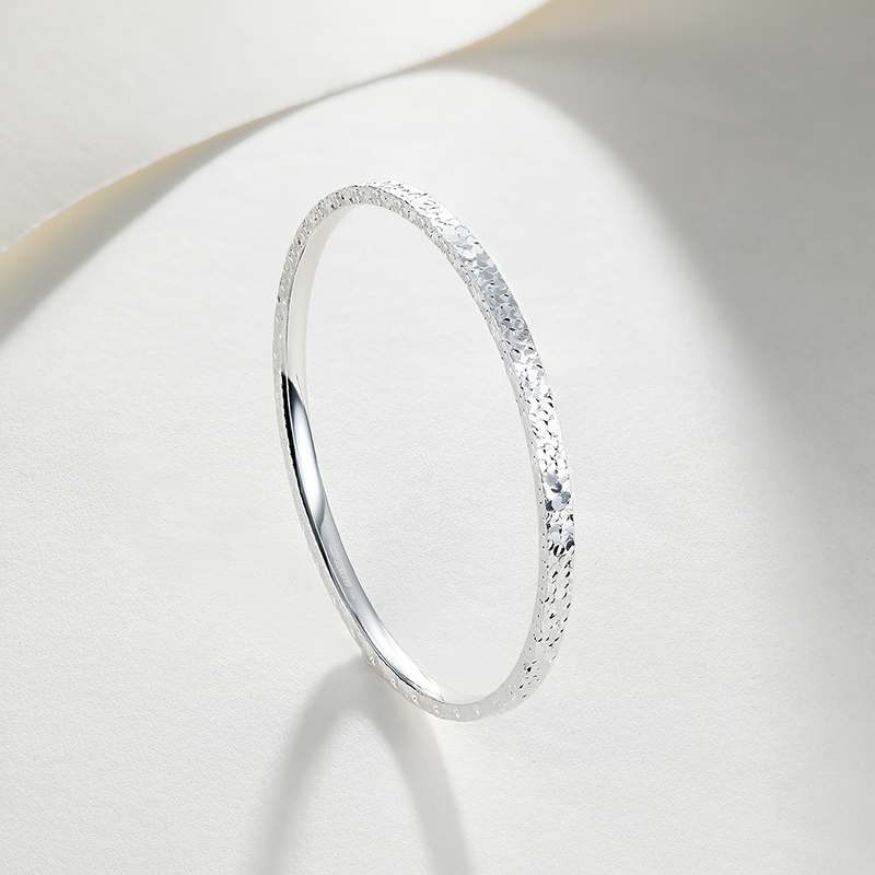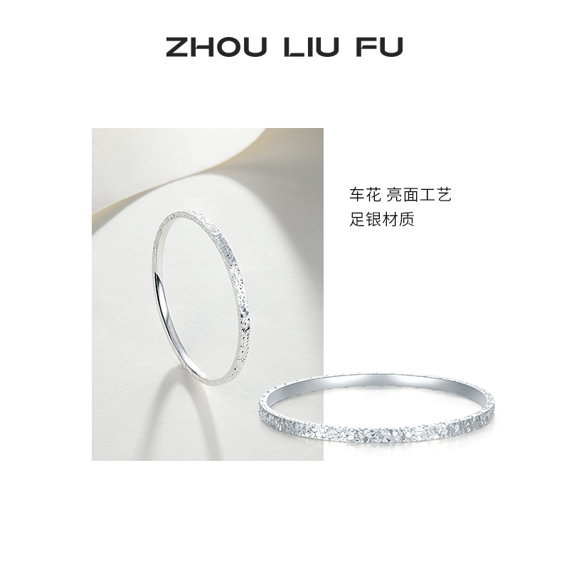 周六福饰品碎碎冰足银手镯女S999银爆闪亮面纯银镯子送女友礼物