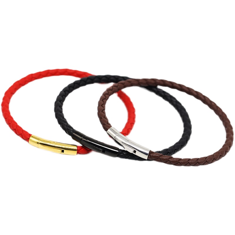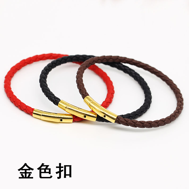 4mm皮绳手链可穿3D硬金黄金转运珠饰品手绳本命年红色男款黒绳子