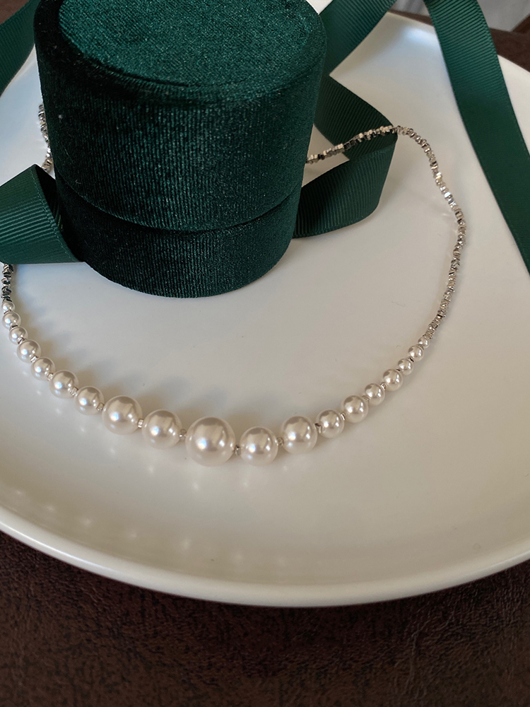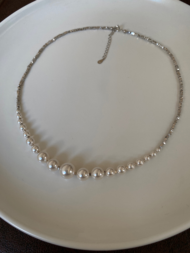 法国YaoYiZun真多麻灰色碎银子珍珠项链法式轻奢小众女施家毛衣链