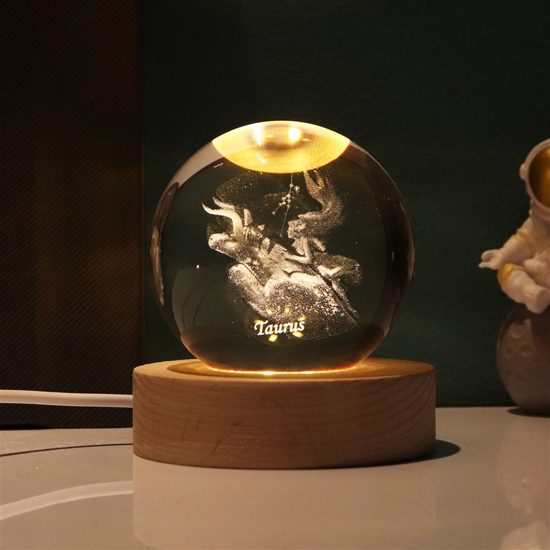 十二12星座创意发光水晶球装饰摆件女孩生日礼物小夜灯情侣狮子座
