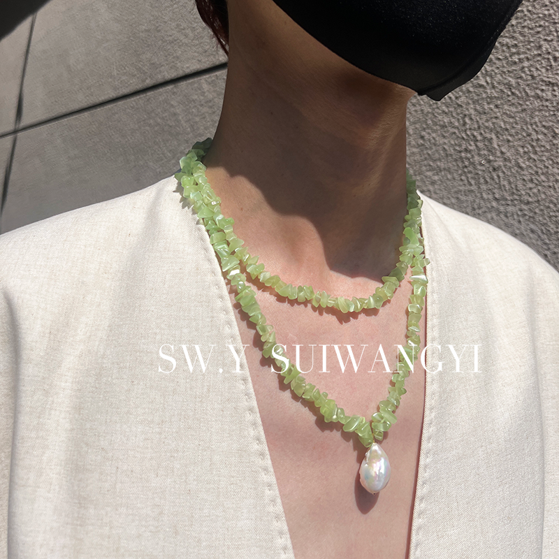 SWY青提猫眼天然巴洛克珍珠项链女锁骨链夏季清新天然石水晶项链