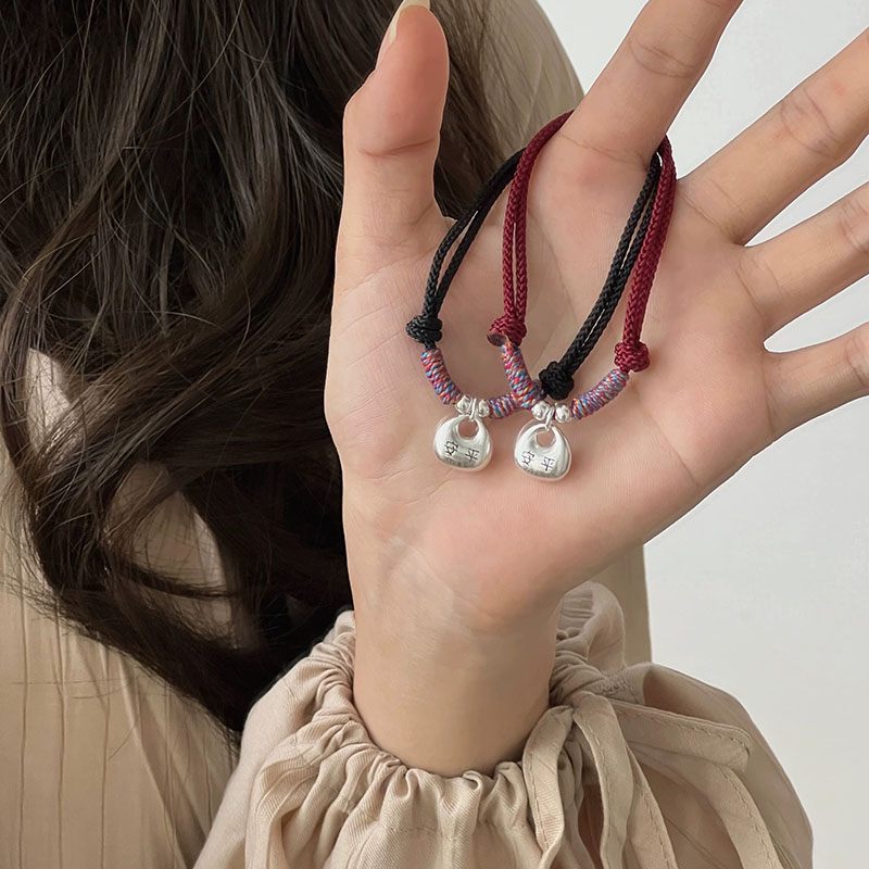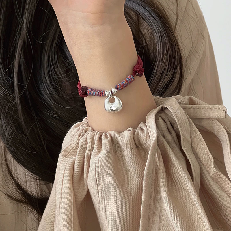 当前位置:首页>商品详情>新中式国风复古平安锁手链女仿银坨坨情侣编织红手绳小福袋手饰
