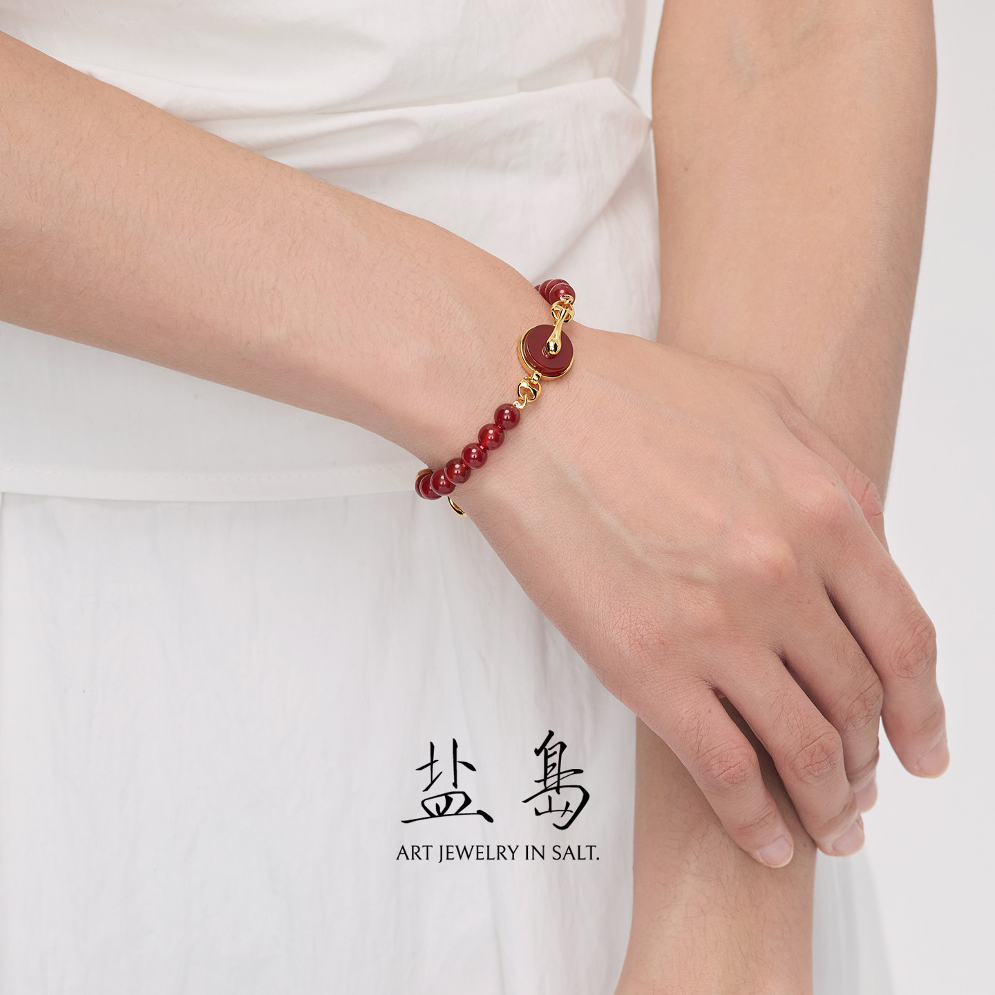 盐岛平安如意红玛瑙串珠手链本命年红色轻奢小众高级感礼品红绳女