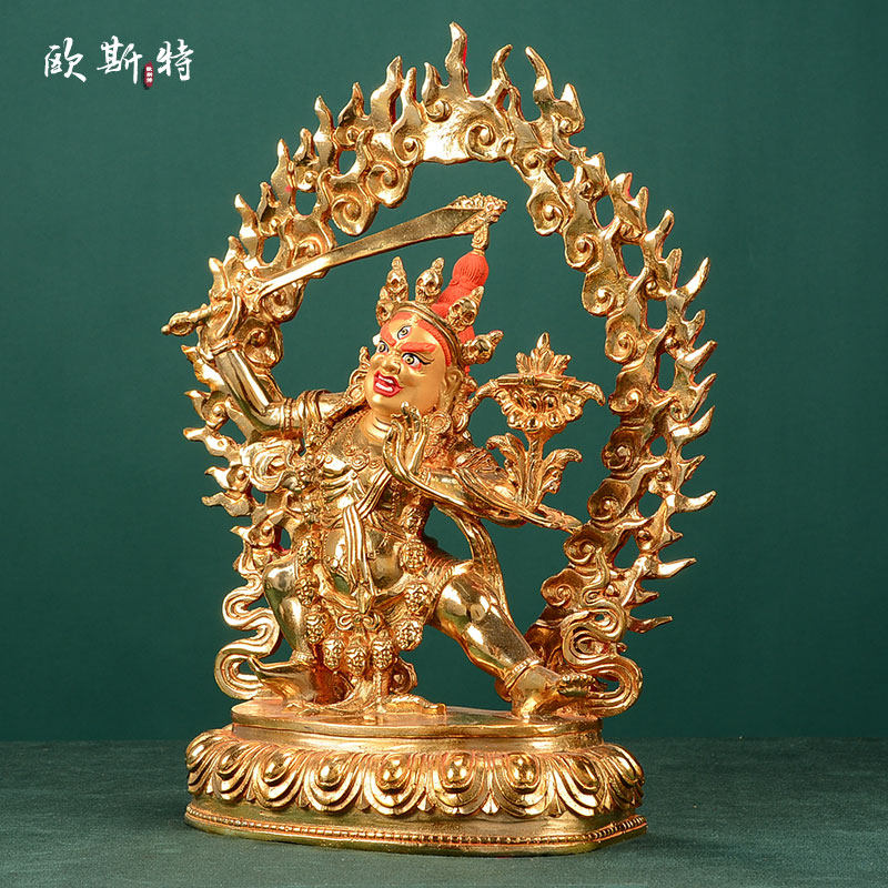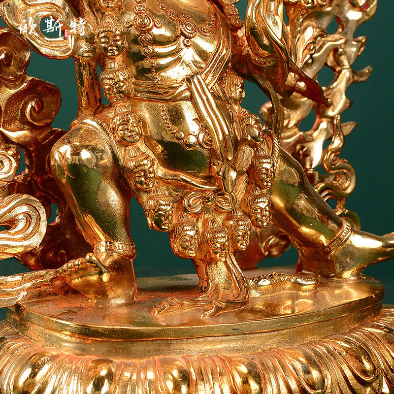 欧斯特 黑文殊铜像 铜全鎏金居家客厅仿尼泊尔文殊菩萨中式摆件