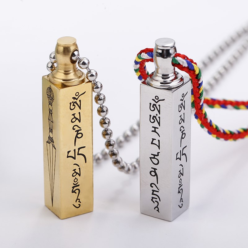 结缘钛钢楞严咒情侣吊坠护身符项链梵文六字真言挂件可打开装经文