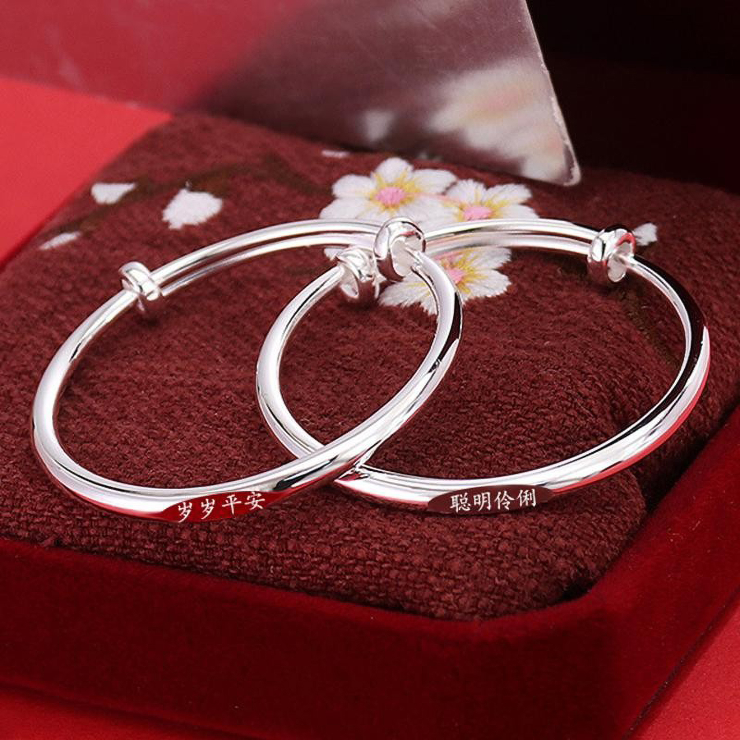 宝宝银手镯9999纯银婴儿足银镯子男童女童小孩满月周岁生日礼物