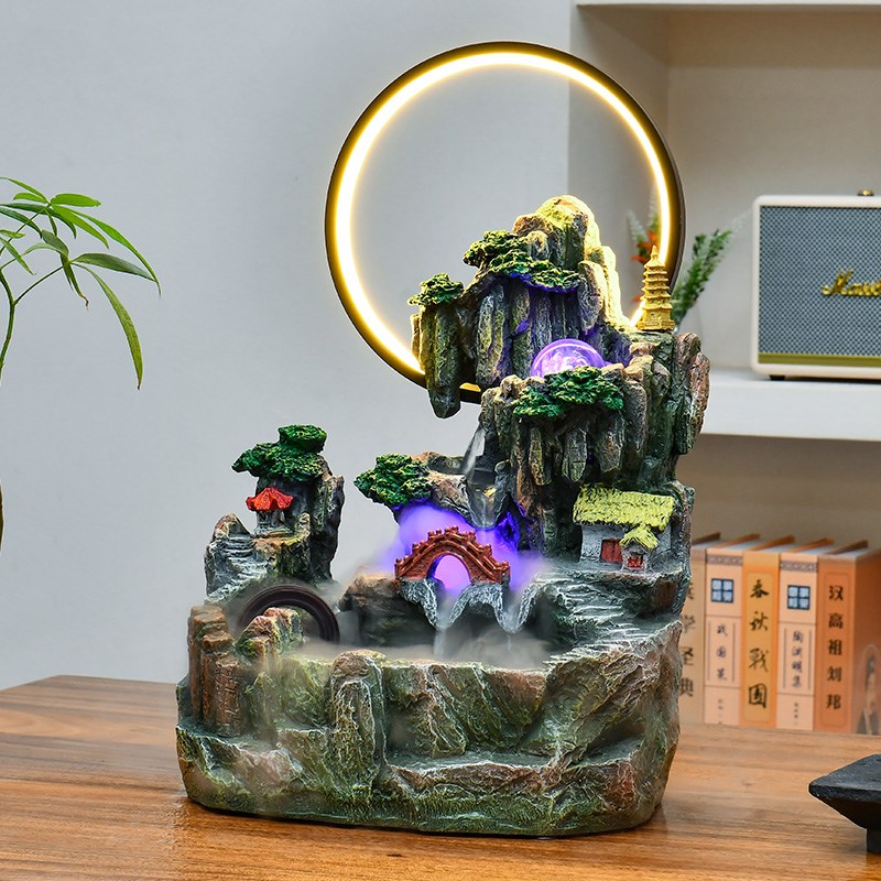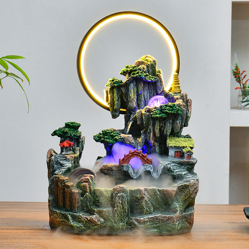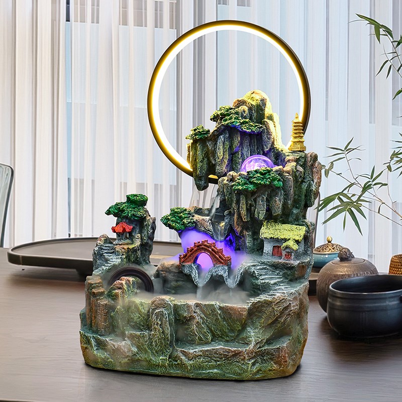 高山流水摆件循环水开业工艺品财源D滚滚喷泉水车风水轮生财加湿