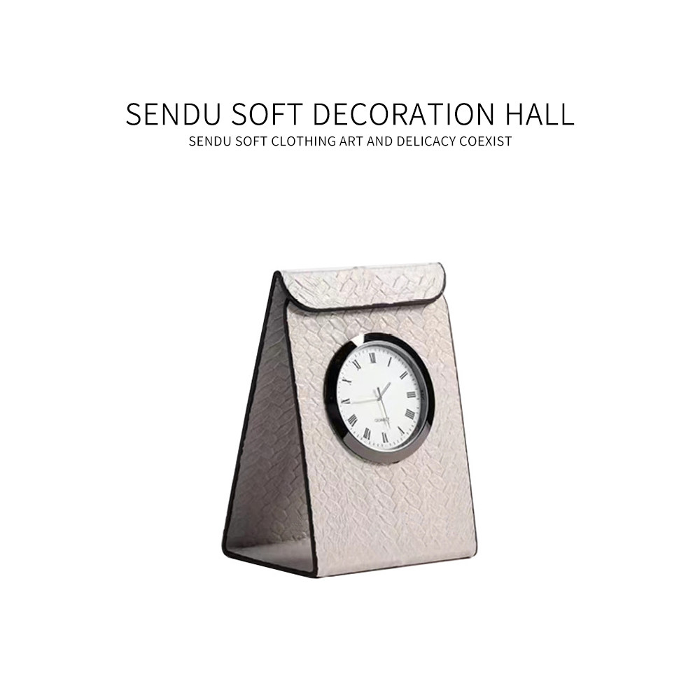 森度设计摆件钟表装饰皮革软装样板房几何座钟工艺品家居饰品树脂