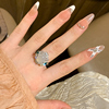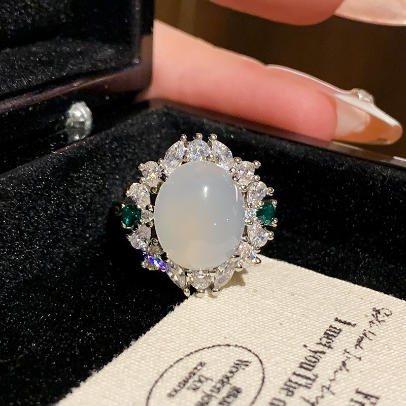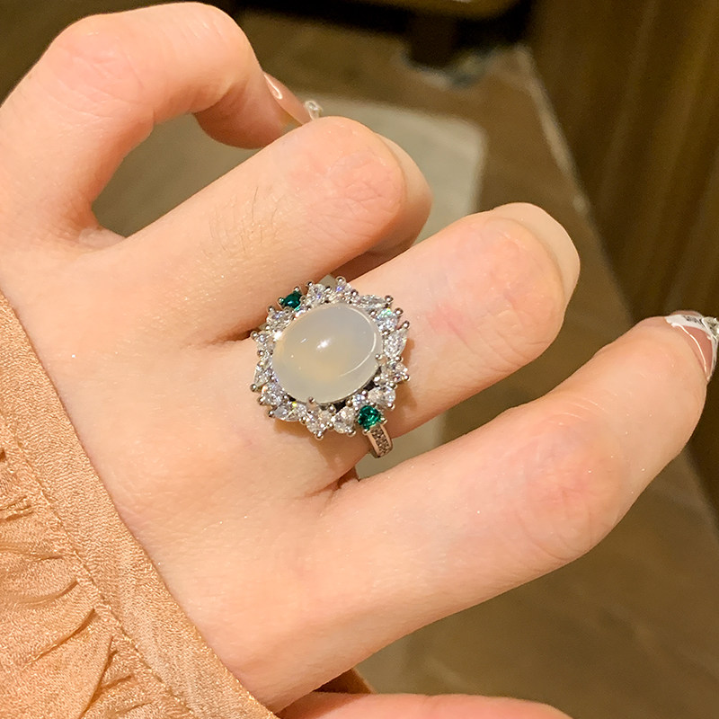 超大鸽子蛋绿边玉戒指女小众设计开口尾戒指女轻奢高级感国风指环
