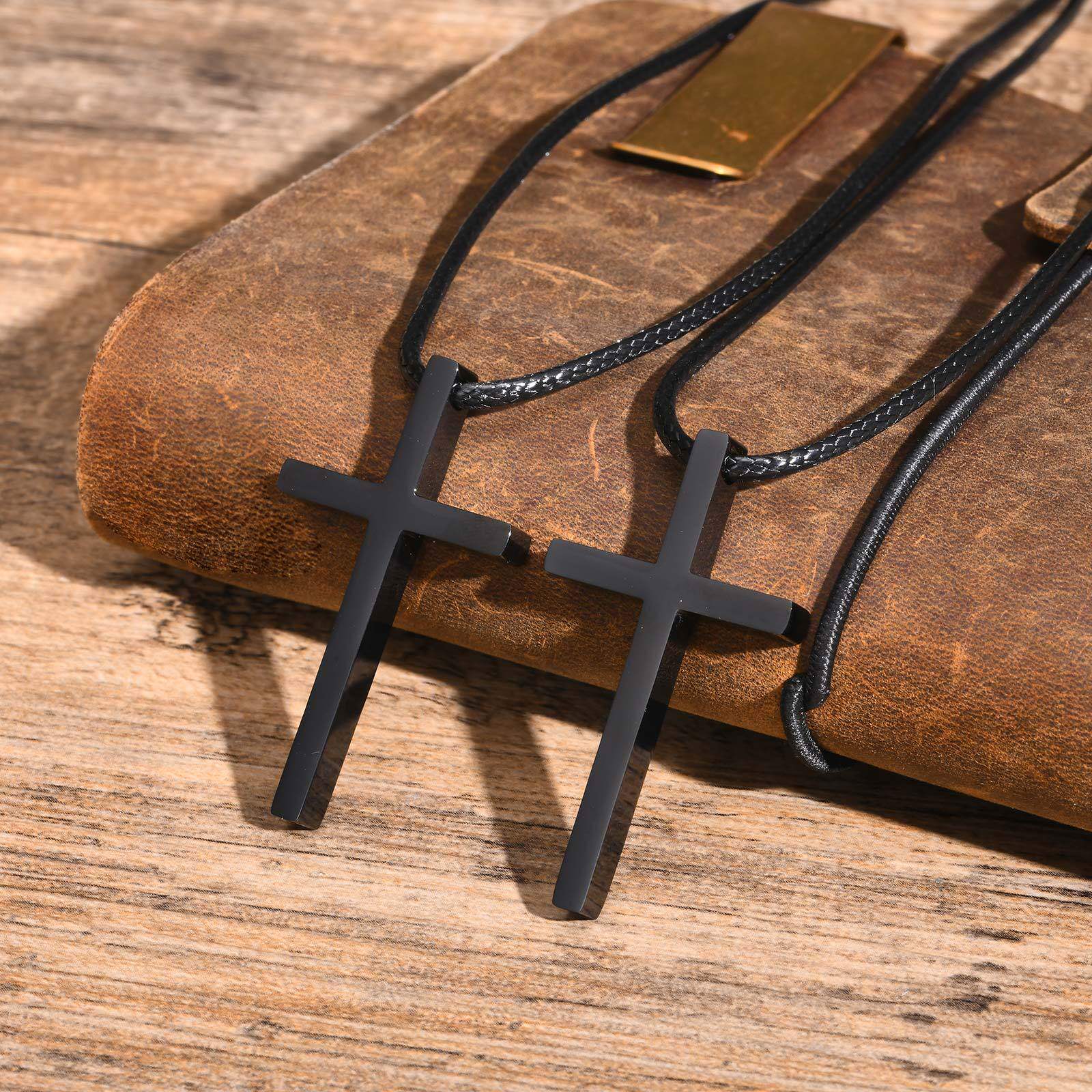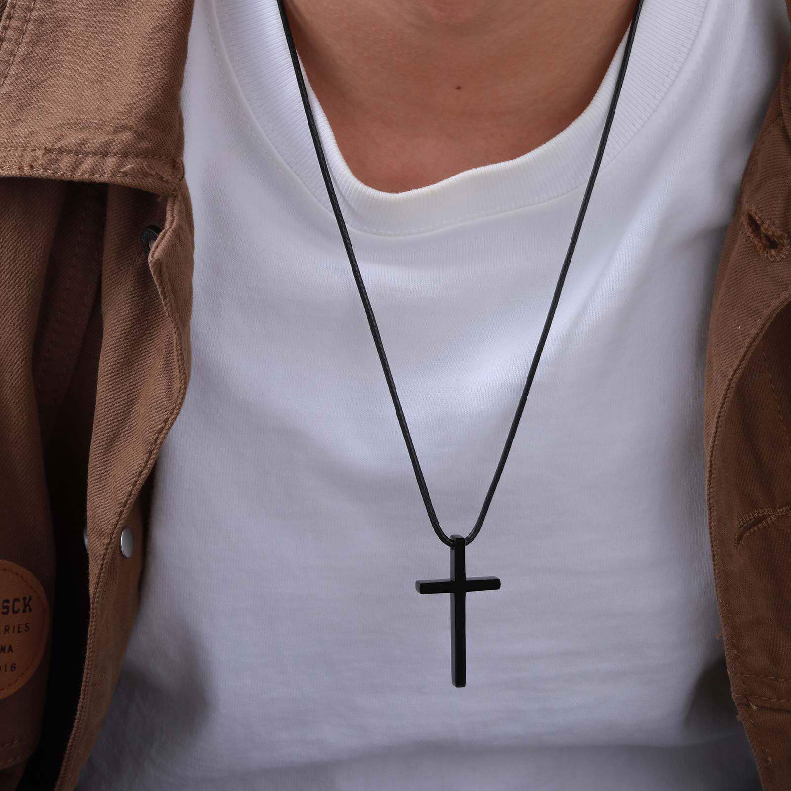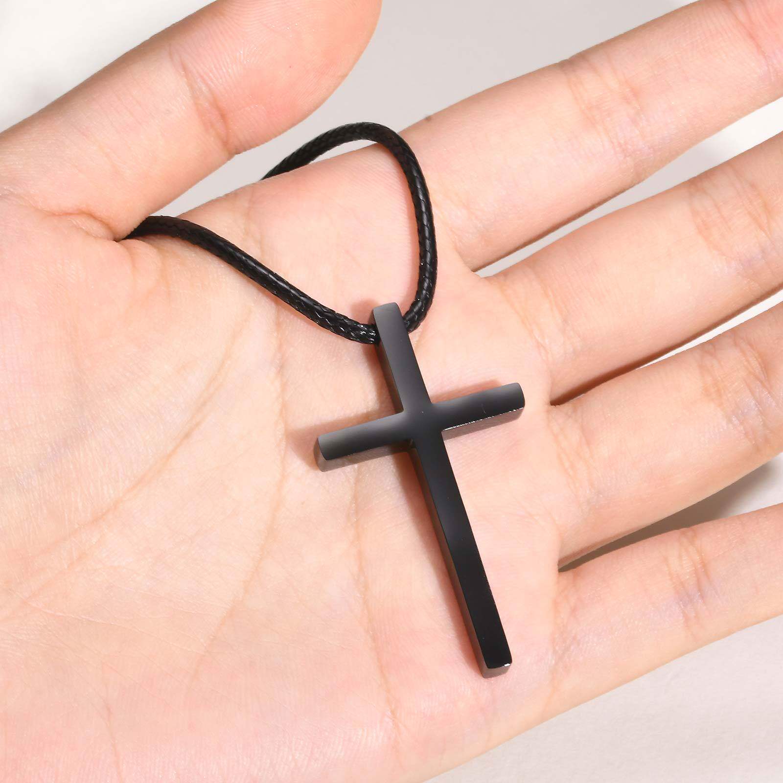 全饰爱 时尚简约黑色十字架蜡绳项链潮男个性钛钢吊坠百搭配饰品