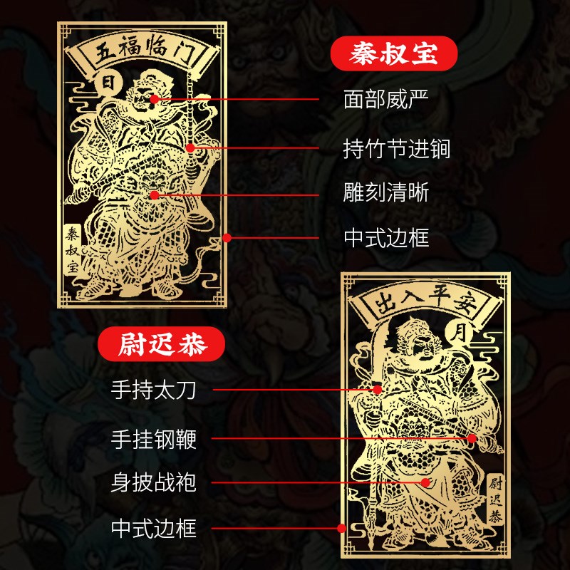 门神贴大门隐形画装饰金属贴家用入户大门口贴画秦叔宝尉迟恭贴纸