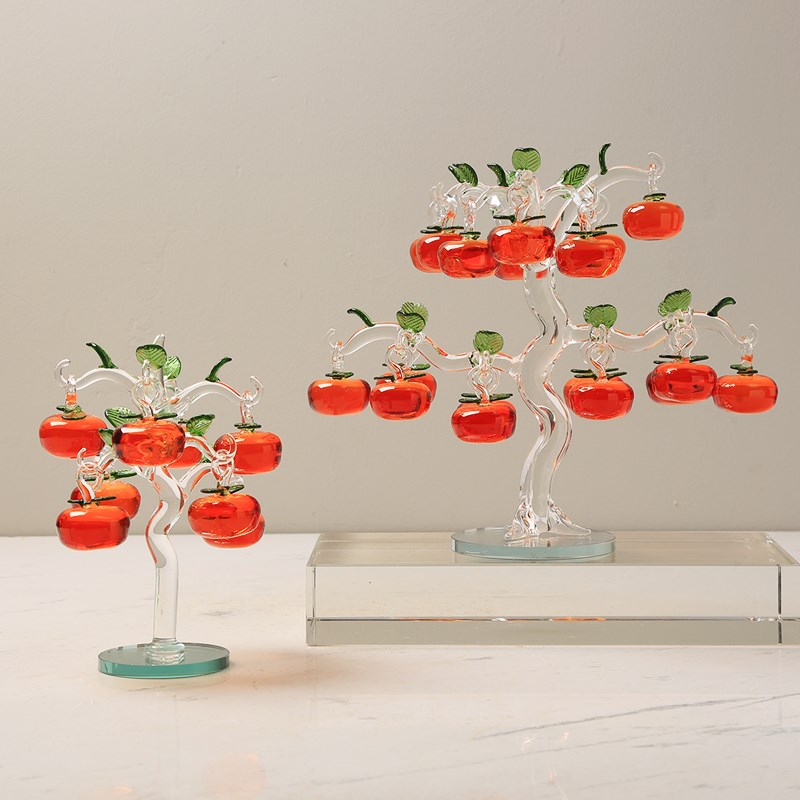 水晶琉璃柿子树摆件现代事事如意别墅客厅酒柜玄关乔迁送礼装饰品
