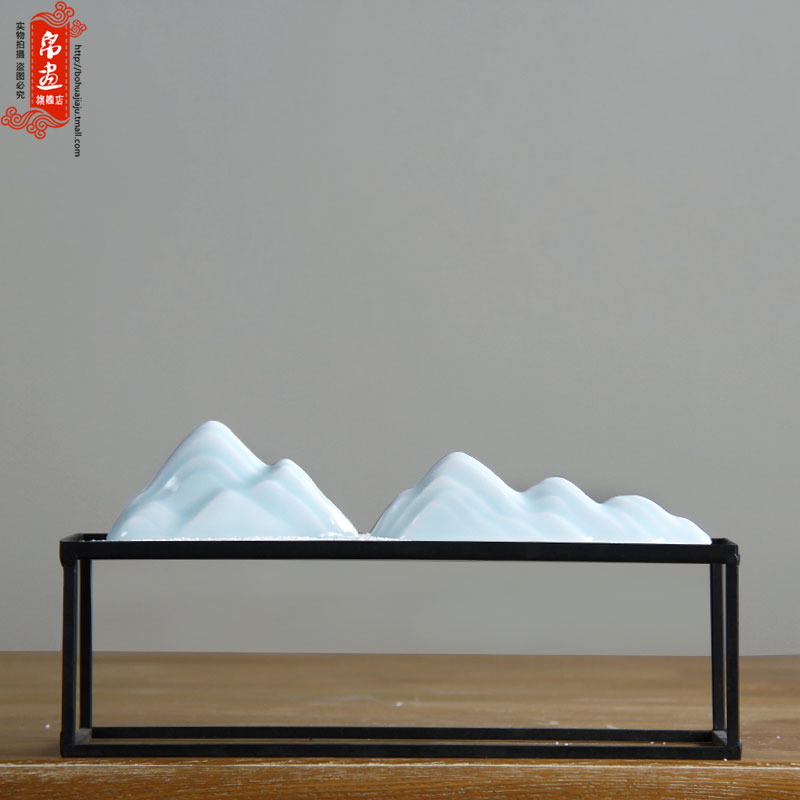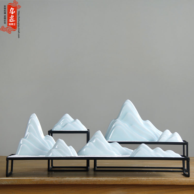 新中式禅意陶瓷雪山假山影摆件枯山水创意软装饰品酒店样板房摆设