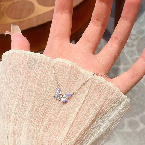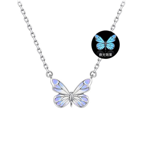 夜光蝴蝶项链女紫色灵动蝴蝶荧光款百搭高级感气质轻奢极光锁骨链
