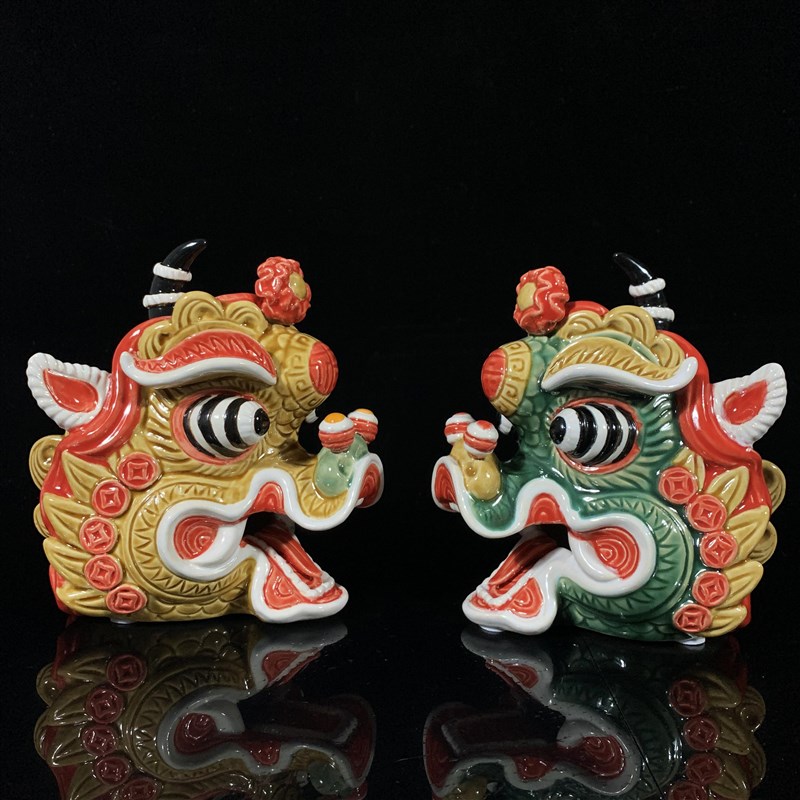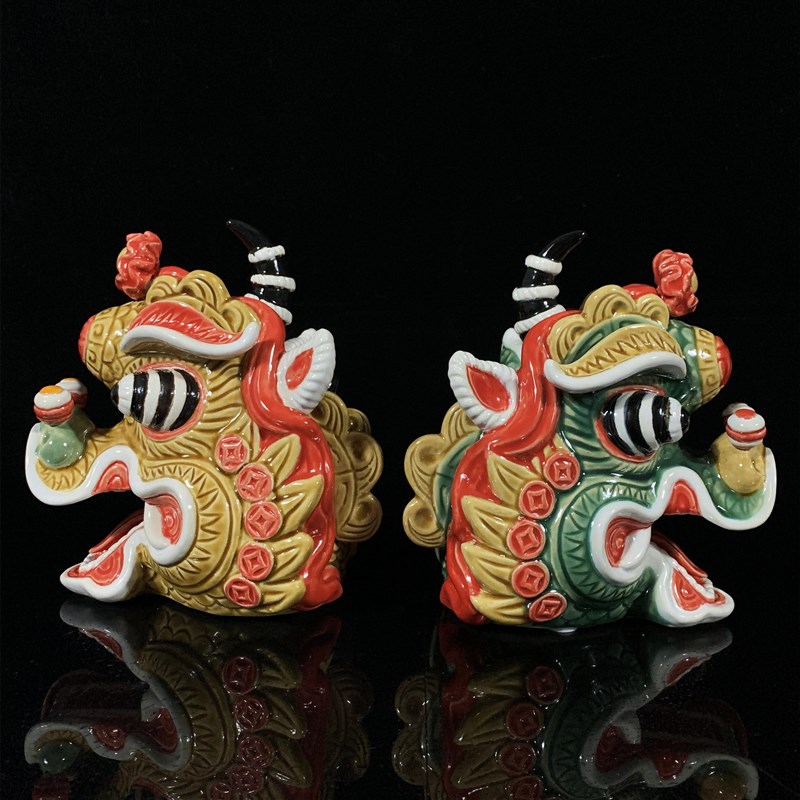 石湾陶瓷麒麟一对摆件家居玄关客厅工艺品博古柜办公室招财装饰摆